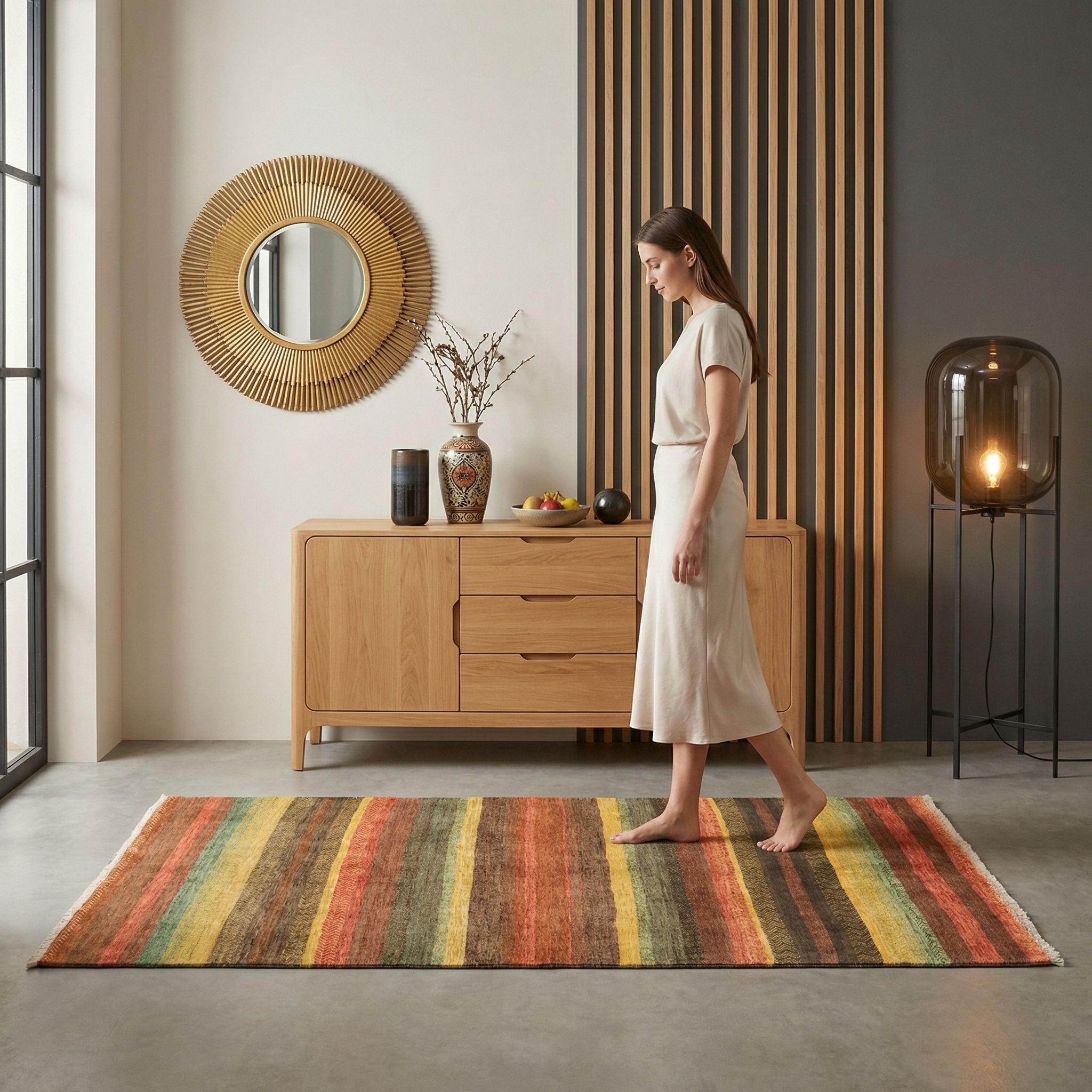 Unsere handgeknüpften Teppiche sind reine Handarbeit aus erlesenen Naturmaterialien. Echte Knoten sowie Schuss- und Kettfäden verleihen ihnen außergewöhnliche Langlebigkeit, Tiefe und bleibenden Wert - jeder Knoten ein Ausdruck echter Handwerkskunst. Handgefertigt und komplett ohne Kleber - für eine authentische, langlebige Qualität.