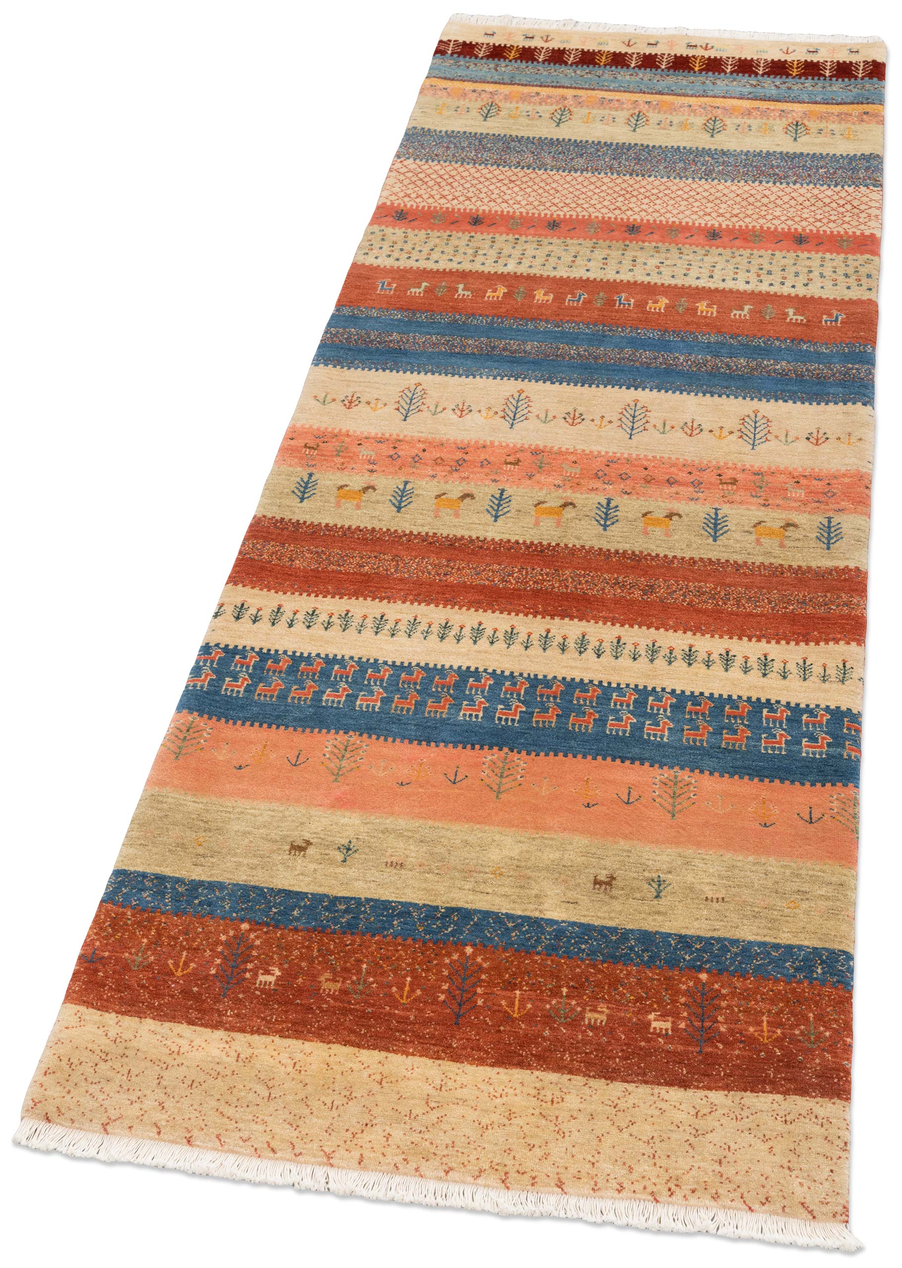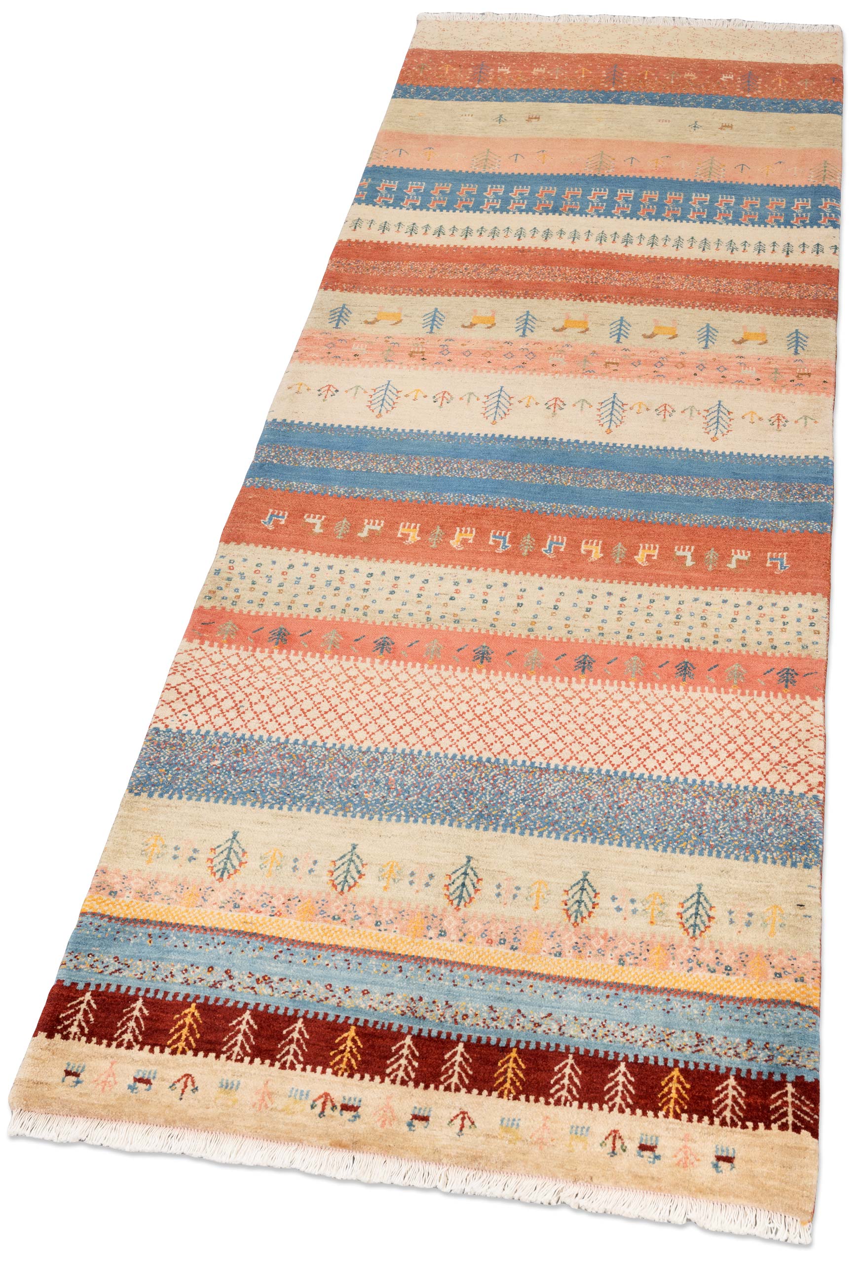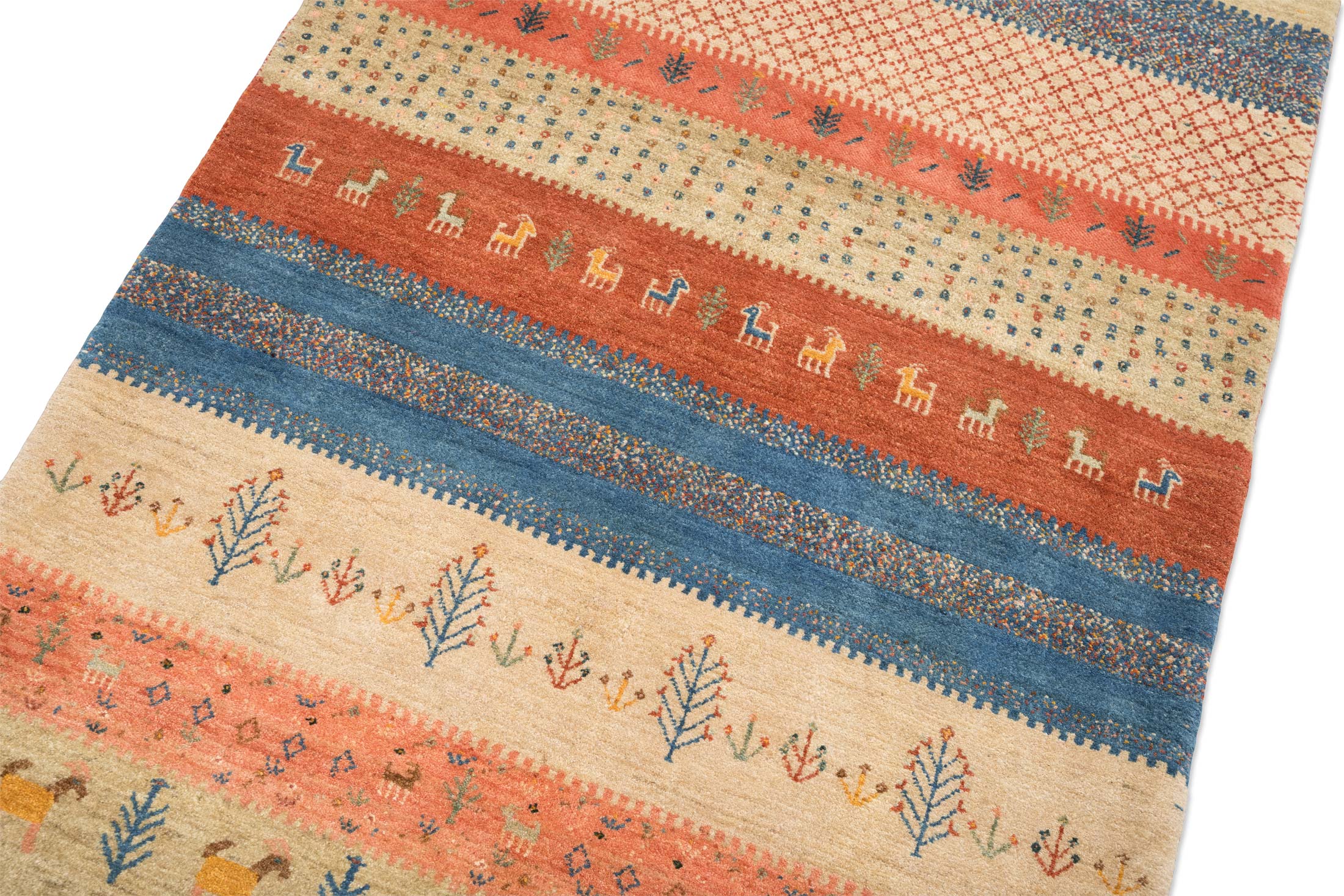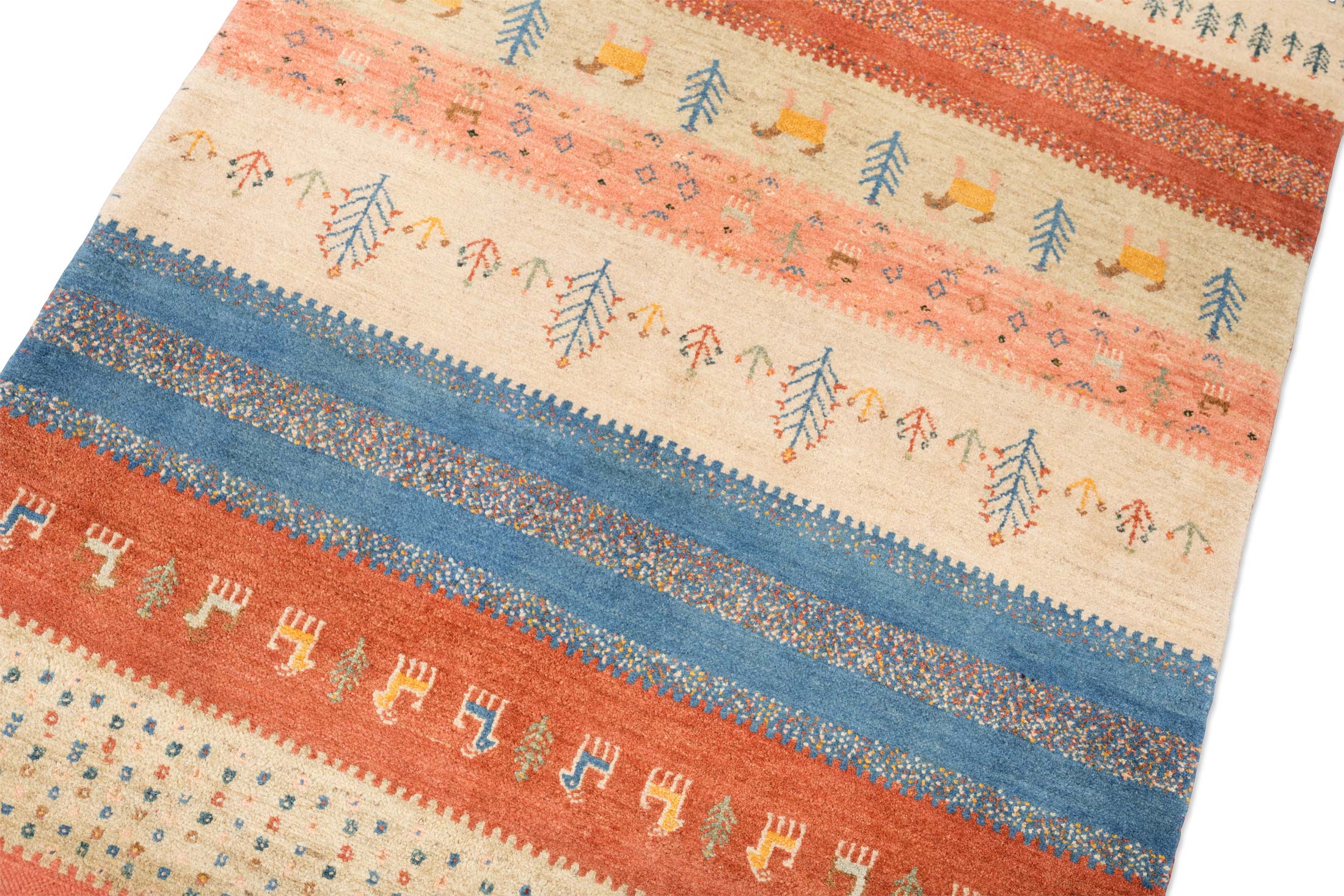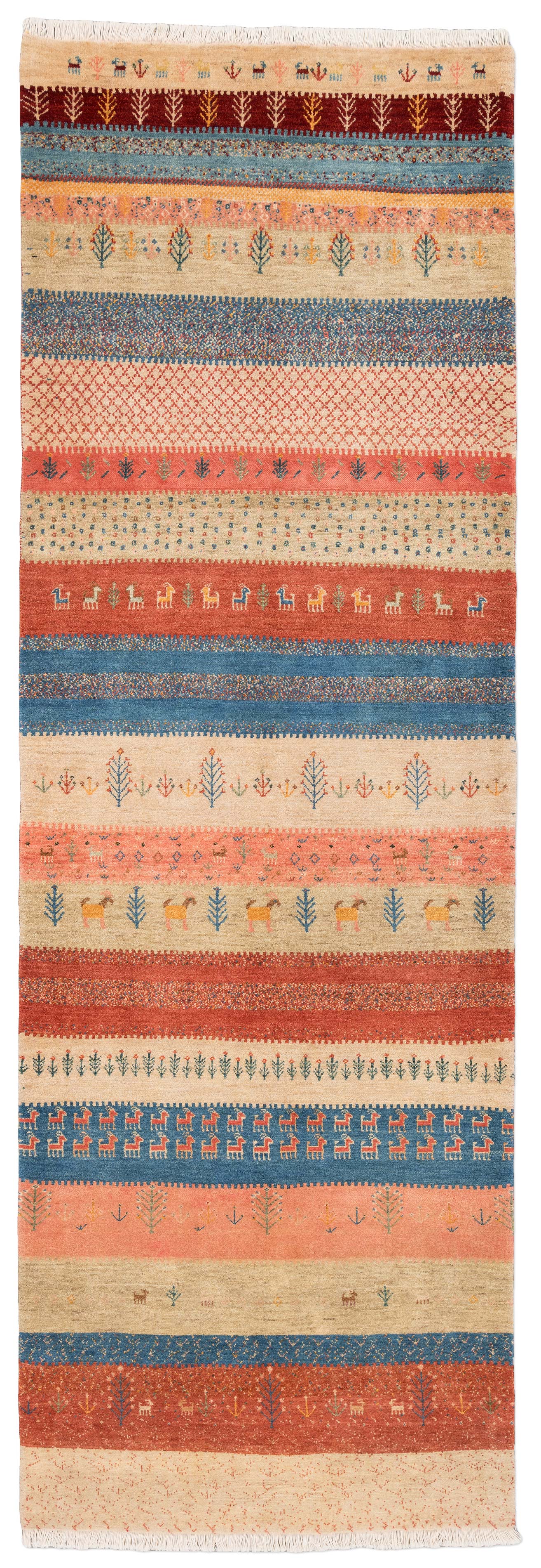 Dieser Teppich ist eine limitierte hauseigene Weiterentwicklung der Kashkulibaft/Gabbeh/Amalehbaft/Rizbaft Teppiche, welche im Hochland des nordwestpersischen Kurdestan in der Stadt Bidjar geknüpft werden. Mit seiner extremen Höhenlage von 1920 Metern wird Bidjar auch als Dach Persiens bezeichnet. Bei diesen unikalen Stücken wird der mystische Musterschatz alter Nomadenvölker so arrangiert, dass eine moderne Bildwirkung entsteht. Die Knüpfer haben bei der Gestaltung der Musterung größte künstlerische Freiheit und arbeiten nicht nach einer Vorlage, so ist jedes Stück absolut einzigartig und authentisch.