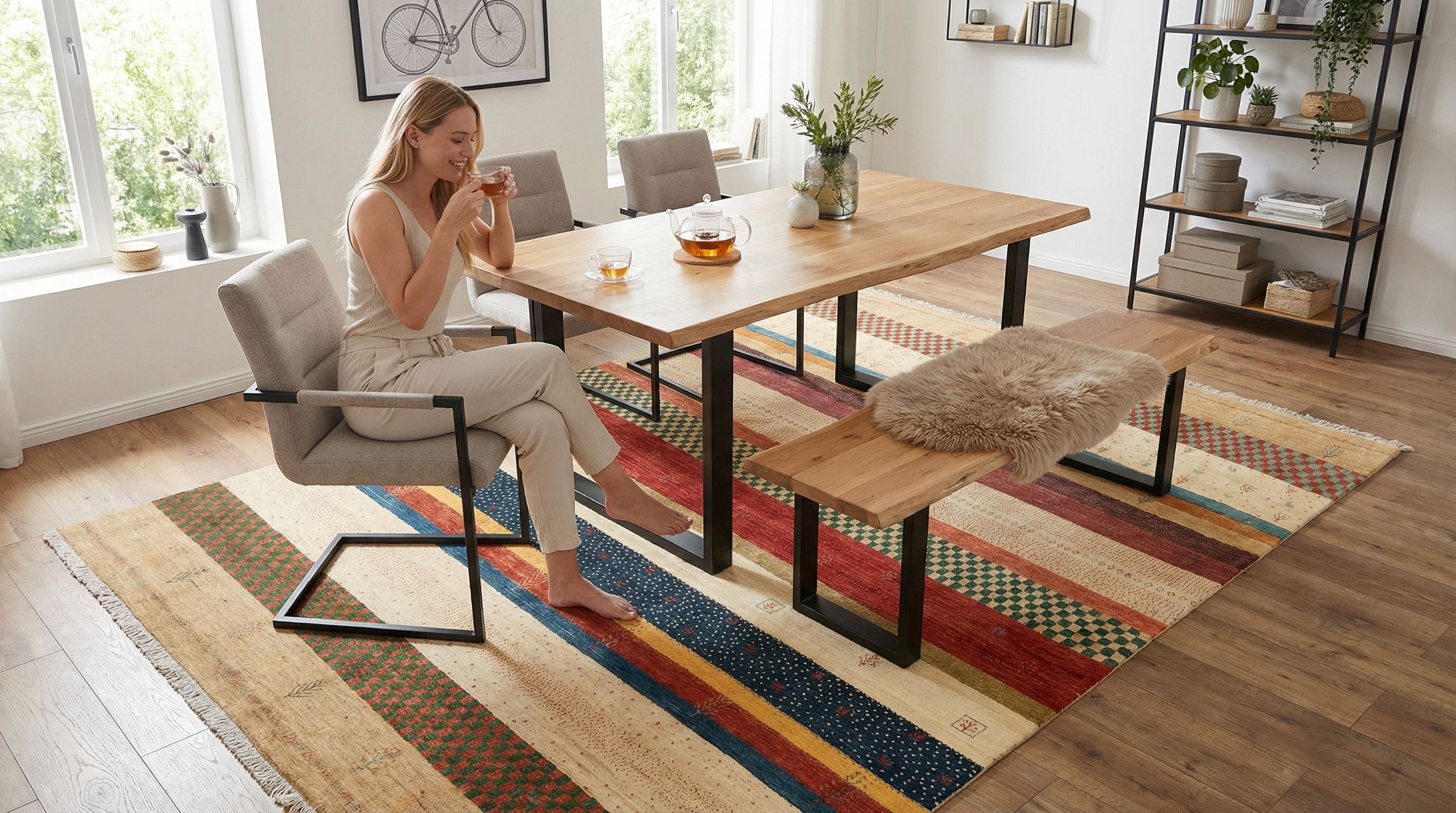 Unsere handgeknüpften Teppiche sind reine Handarbeit aus erlesenen Naturmaterialien. Echte Knoten sowie Schuss- und Kettfäden verleihen ihnen außergewöhnliche Langlebigkeit, Tiefe und bleibenden Wert - jeder Knoten ein Ausdruck echter Handwerkskunst. Handgefertigt und komplett ohne Kleber - für eine authentische, langlebige Qualität.