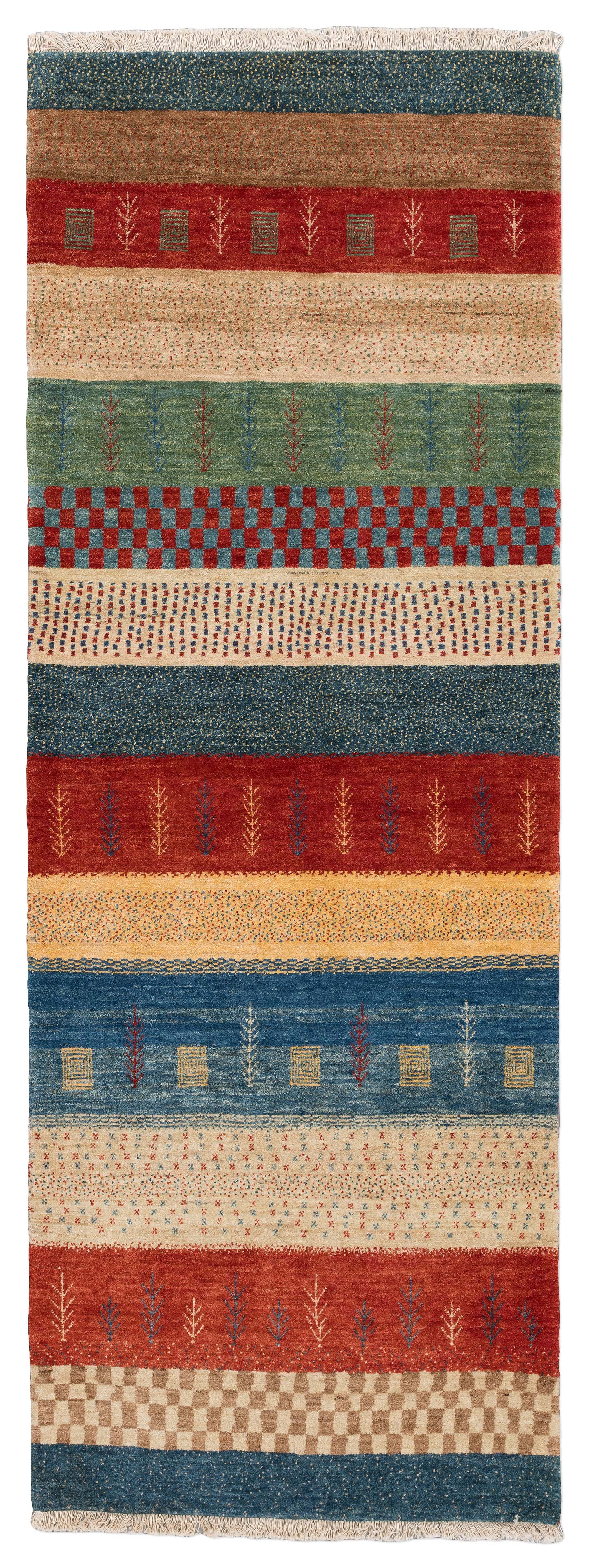 Bidjar-Novum: Dieser Teppich ist eine limitierte hauseigene Weiterentwicklung der Kashkulibaft/Gabbeh/Amalehbaft/Rizbaft Teppiche, welche im Hochland des nordwestpersischen Kurdestan in der Stadt Bidjar geknüpft werden. Mit seiner extremen Höhenlage von 1920 Metern wird Bidjar auch als Dach Persiens bezeichnet. Bei diesen unikalen Stücken wird der mystische Musterschatz alter Nomadenvölker so arrangiert, dass eine moderne Bildwirkung entsteht. Die Knüpfer haben bei der Gestaltung der Musterung größte
