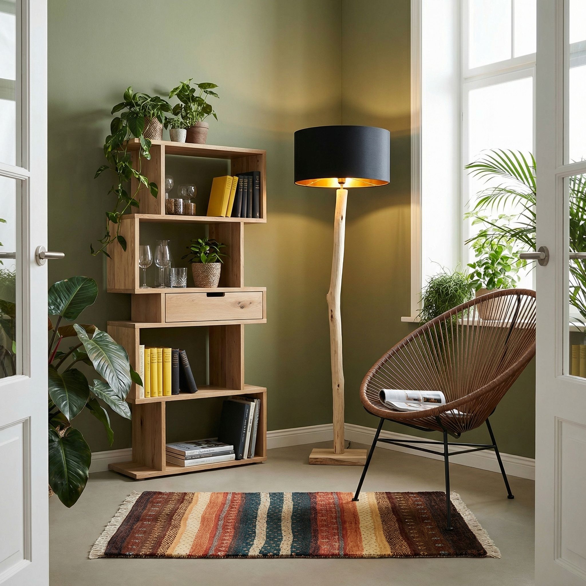 Der Teppich passt hervorragend zum Boho-Style, da dieser Unkonventionalität und künstlerische Freiheit feiert, was sich in der individuellen Gestaltung ohne feste Vorlage durch die Knüpfer widerspiegelt. Die lebendigen, aber natürlichen Farben und die verspielten geometrischen Motive innerhalb der Streifen unterstreichen den entspannten und eklektischen Charakter dieses Wohnstils. Da im Boho-Chic der Fokus auf Textur und "Unperfektheit" liegt, harmoniert die sichtbare Struktur der handversponnenen Wolle wunderbar mit Rattanmöbeln, vielen Pflanzen und bunten Kissen. Jedes Stück ist ein Unikat mit Charakter, was dem Wunsch nach Individualität im Bohème-Interieur exakt entspricht.