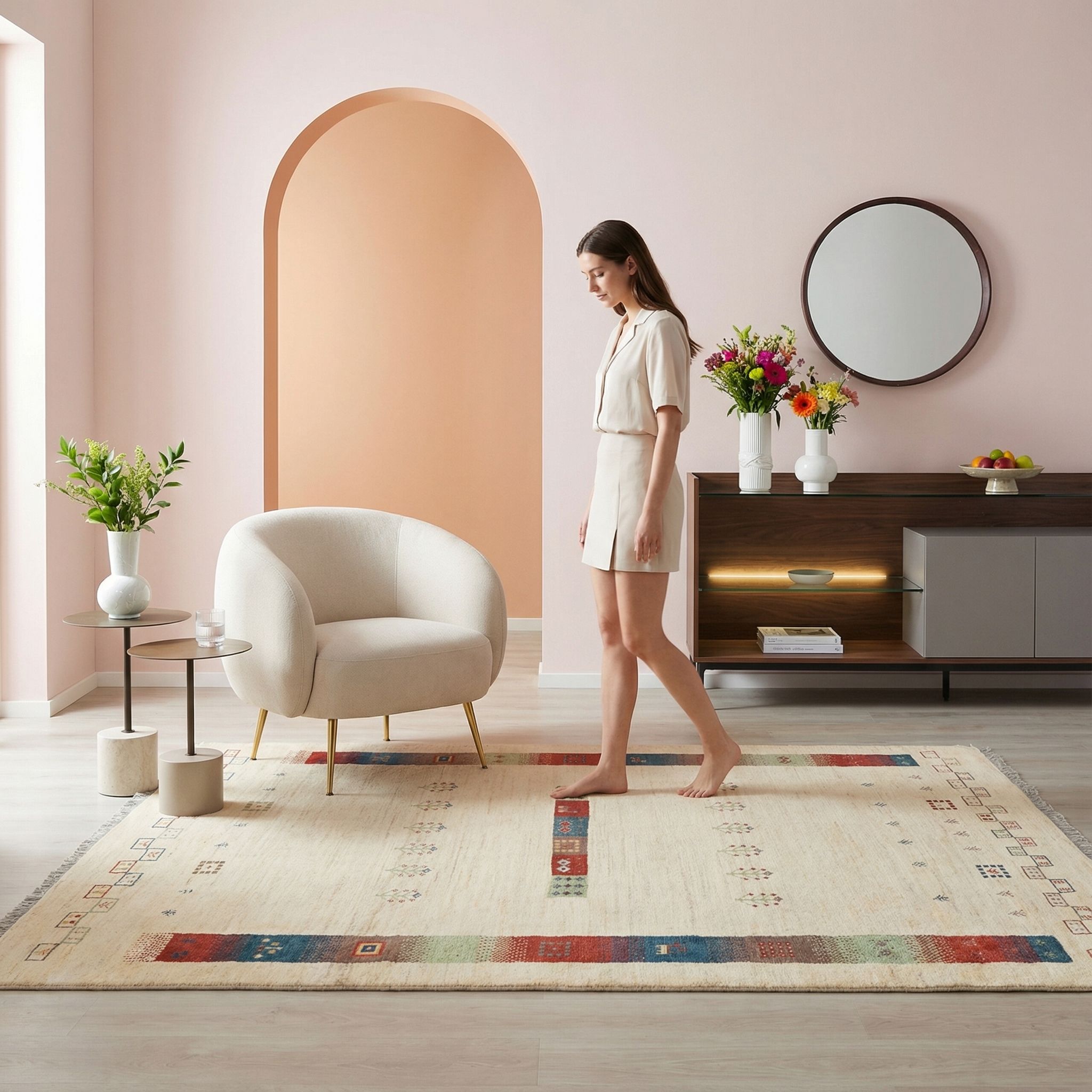 Reine Handarbeit und natürliche Materialien wie Schurwolle, Seide oder Baumwolle schaffen Teppiche von bleibender Schönheit und Qualität. Deshalb setzen wir auf echte Handknüpfung – für zeitgemäße, exklusive Einrichtungsstücke mit nachhaltigem Wert.