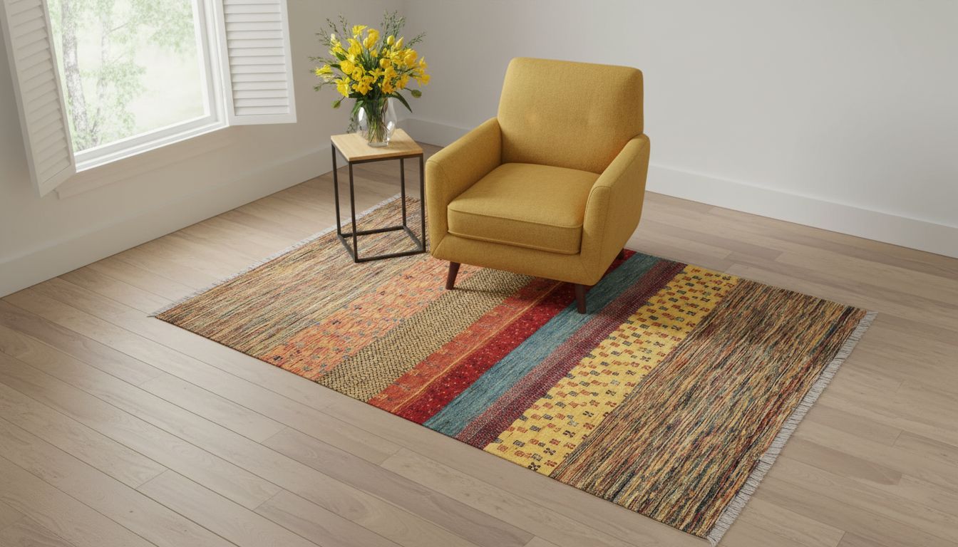 Hier präsentieren wir einen handgeknüpften Bidjar-Novum Teppich aus Persien, der durch seine harmonische Farbgebung und Detailverliebtheit besticht. Die Hauptfarbe ist ein warmes Rot, das durch seine Tiefe und Intensität beeindruckt. Ergänzt wird dieses durch ein lebhaftes Gelb und ein beruhigendes Blau, die dem Teppich eine fröhliche und zugleich edle Ausstrahlung verleihen. Die Musterung zeigt eine traditionelle Nomadenästhetik, modern interpretiert, mit geometrischen und floralen ...mehr Beschreibung