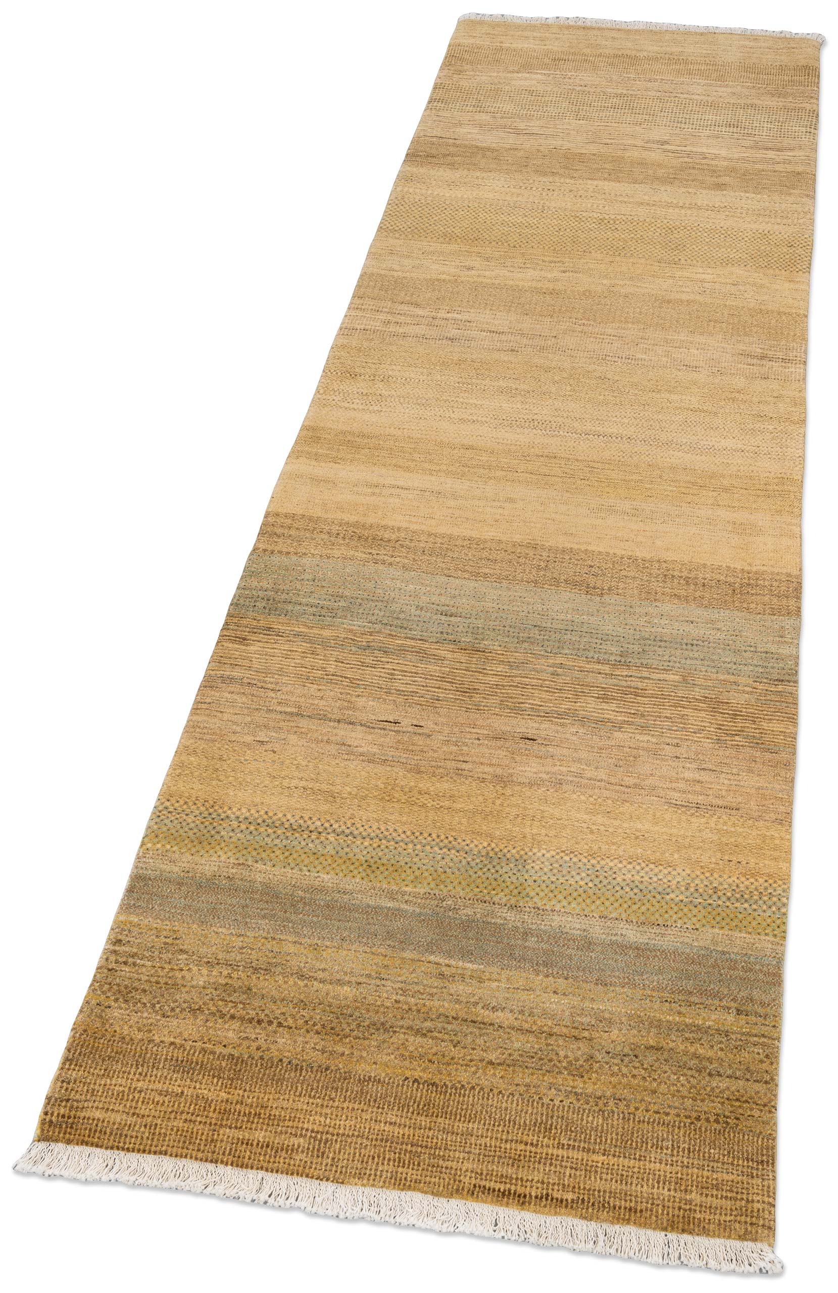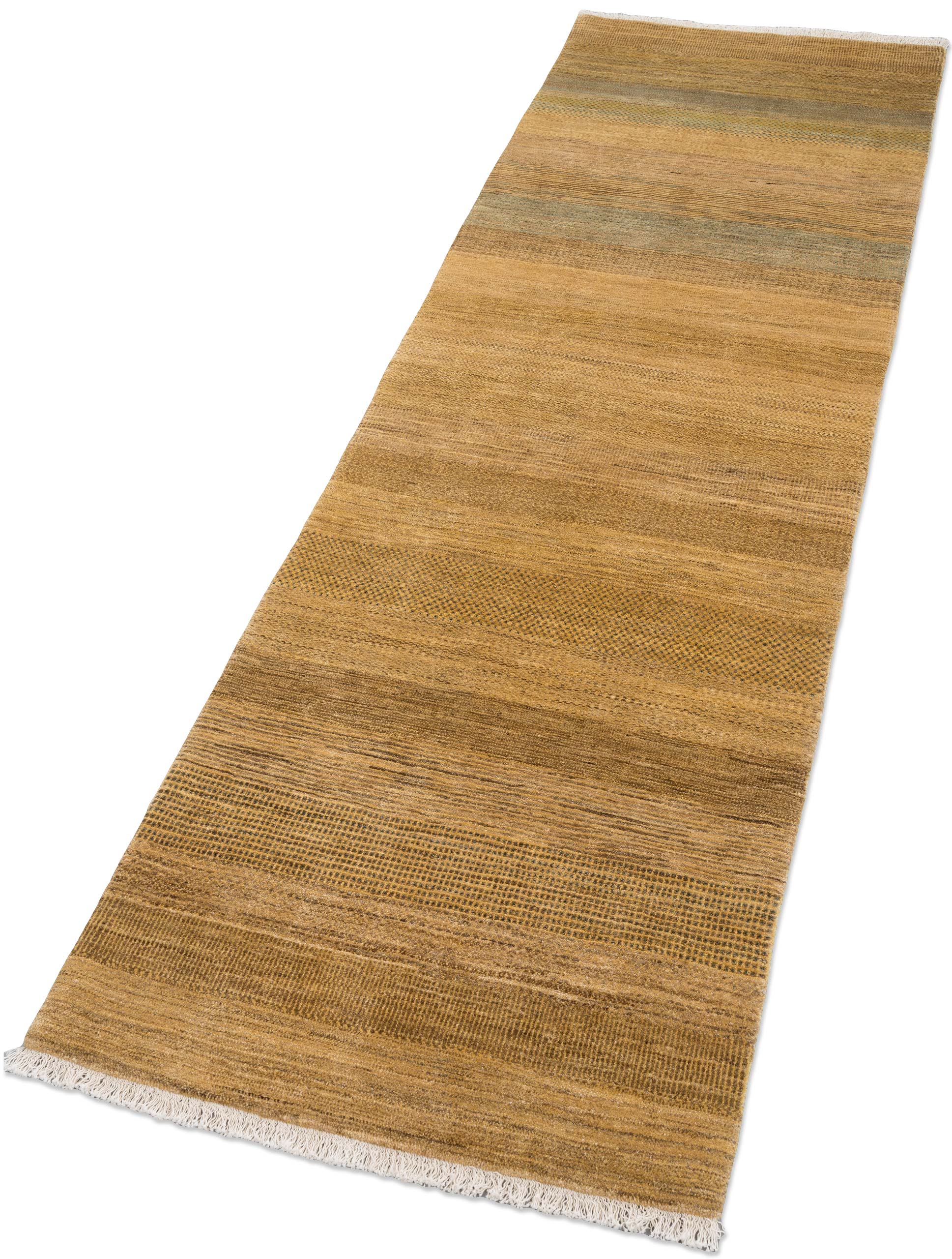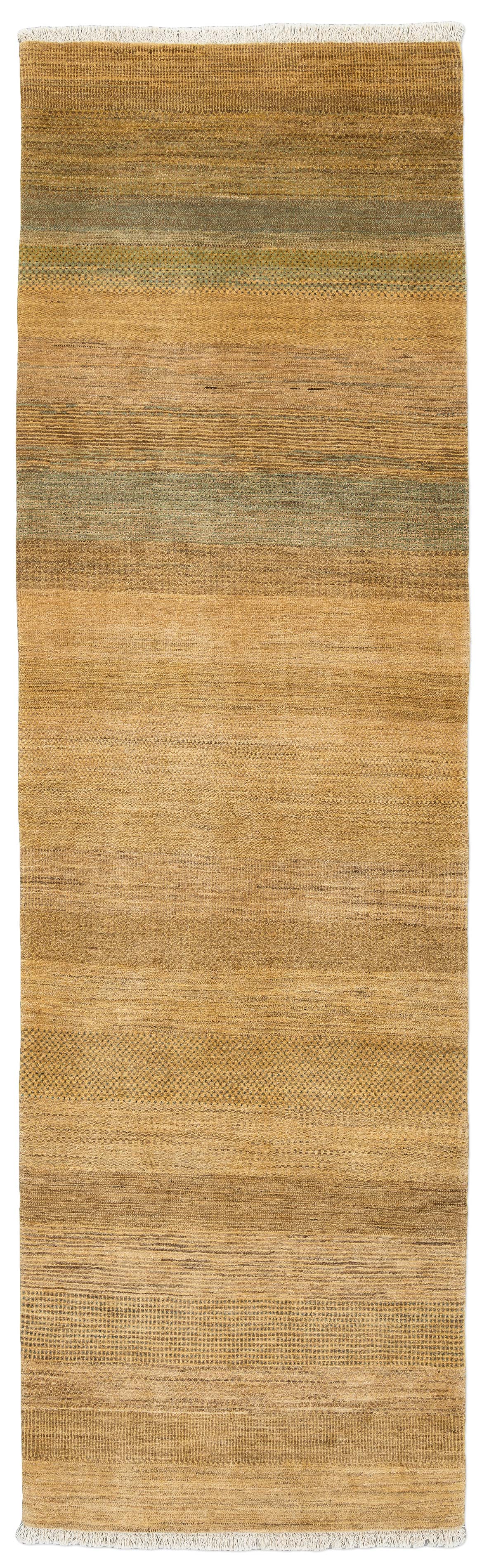 Dieser Bidjar-Novum Teppich besticht durch seine warme Hauptfarbe Ocker, die dem Raum eine einladende und gemütliche Atmosphäre verleiht. Ergänzt wird diese durch erdige Brauntöne und dezente Grüntöne, die zusammen ein harmonisches Gesamtbild schaffen. Die Musterung ist zurückhaltend, aber raffiniert, bestehend aus feinen Streifen und subtilen geometrischen Formen, die den traditionellen persischen Stil mit moderner Ästhetik verbinden.Handgeknüpft aus hochwertigster kurdischer ...