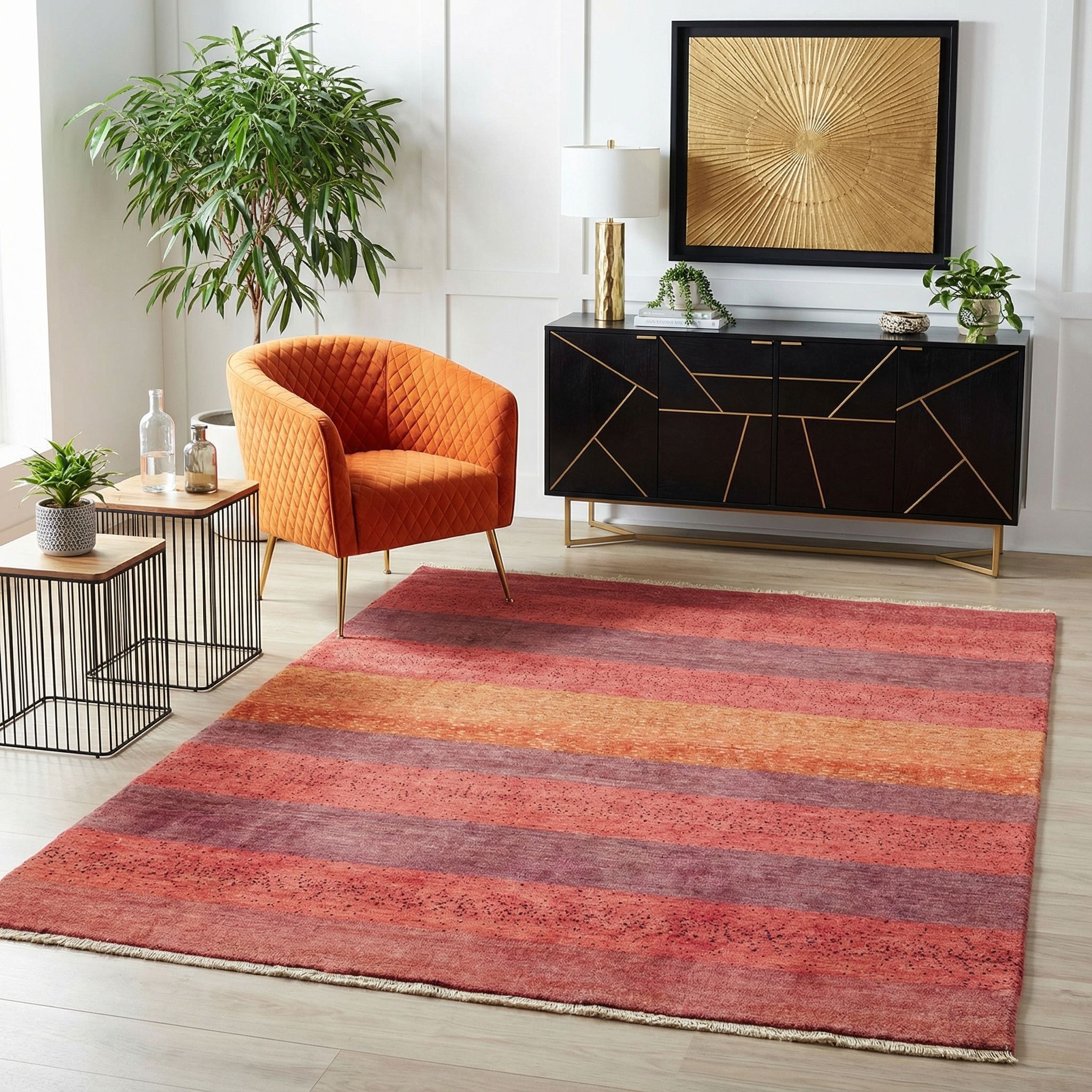 Hier präsentieren wir einen exquisiten Bidjar-Novum Teppich aus Persien, der durch seine beeindruckende Farbkombination von warmen Rottönen besticht. Die Hauptfarbe ist ein kräftiges Rot, das durch Akzente in einem sanften Orange ergänzt wird. Dunklere Rotnuancen verleihen dem Teppich Tiefe und Charakter. Die Musterung ist dezent und modern gehalten, mit horizontalen Streifen, die eine harmonische und zugleich dynamische Bildwirkung erzielen.