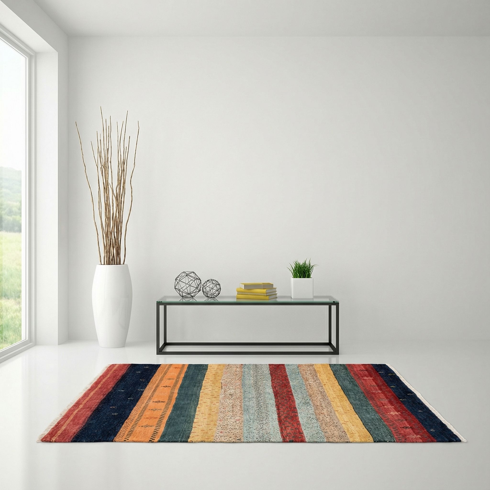Bidjar-Novum: Dieser Teppich ist eine limitierte hauseigene Weiterentwicklung der Kashkulibaft/Gabbeh/Amalehbaft/Rizbaft Teppiche, welche im Hochland des nordwestpersischen Kurdestan in der Stadt Bidjar geknüpft werden. Mit seiner extremen Höhenlage von 1920 Metern wird Bidjar auch als Dach Persiens bezeichnet. Bei diesen unikalen Stücken wird der mystische Musterschatz alter Nomadenvölker so arrangiert, dass eine moderne Bildwirkung entsteht. Die Knüpfer haben bei der Gestaltung der Musterung größte