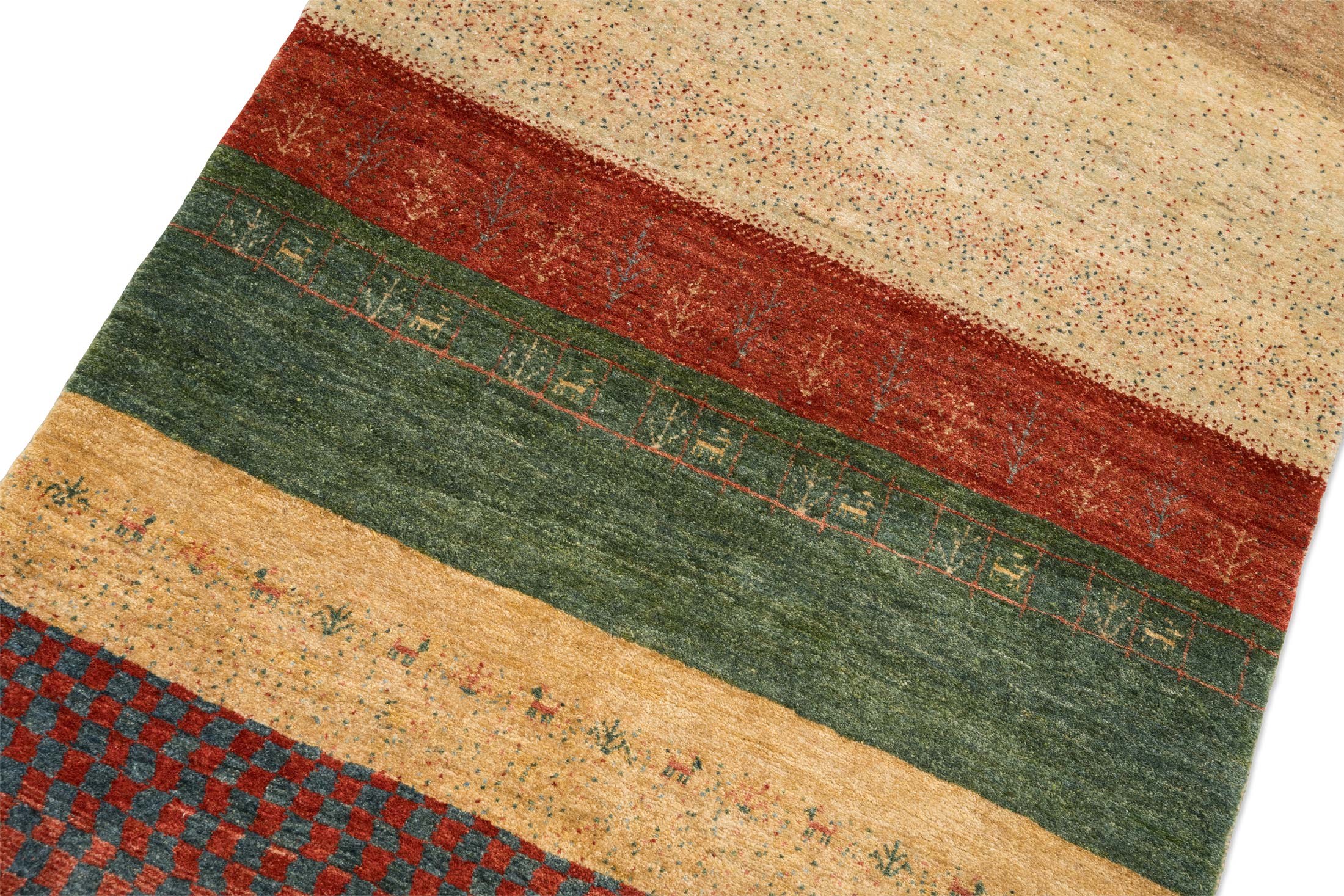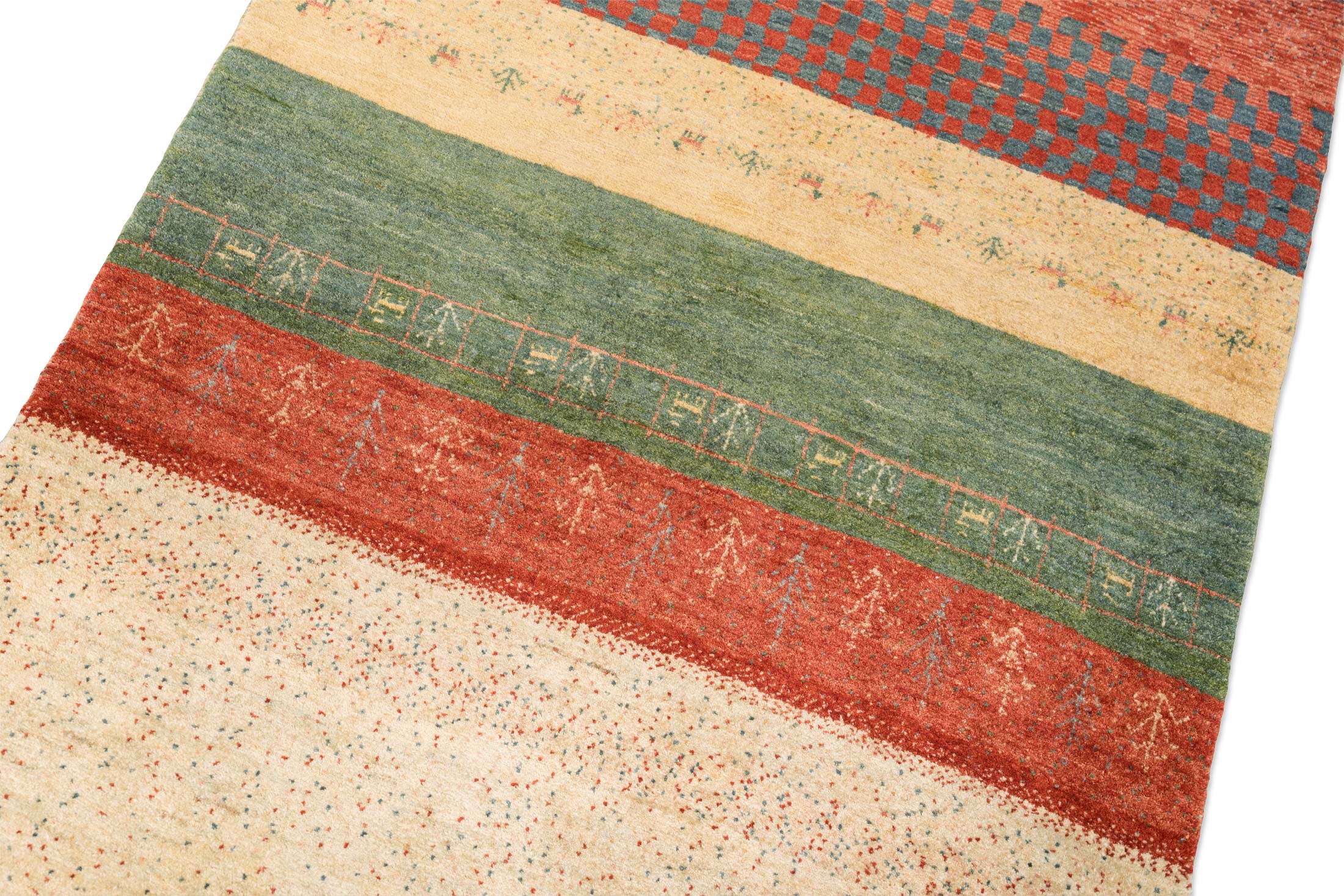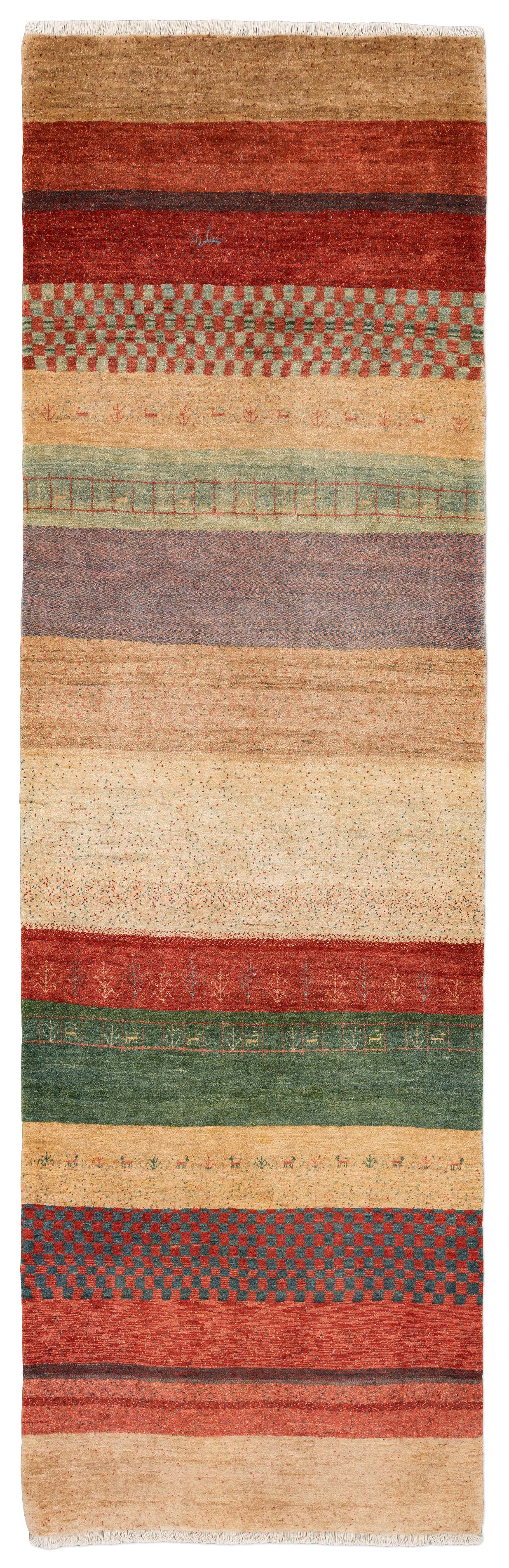 Dieser handgeknüpfte Bidjar-Novum Teppich aus Persien präsentiert sich in einem harmonischen Zusammenspiel von Farben, wobei ein warmes Rot den Ton angibt. Ergänzt wird es durch ein tiefes Grün und ein sanftes Goldgelb, die sich in geschmackvollen Mustern verbinden. Die Musterung zeigt traditionelle Nomadenmotive, modern interpretiert, mit geometrischen und floralen Elementen, die dem Teppich eine lebendige und zugleich raffinierte Ausstrahlung verleihen. Mit etwa 250.000 Knoten pro ...mehr Beschreibung