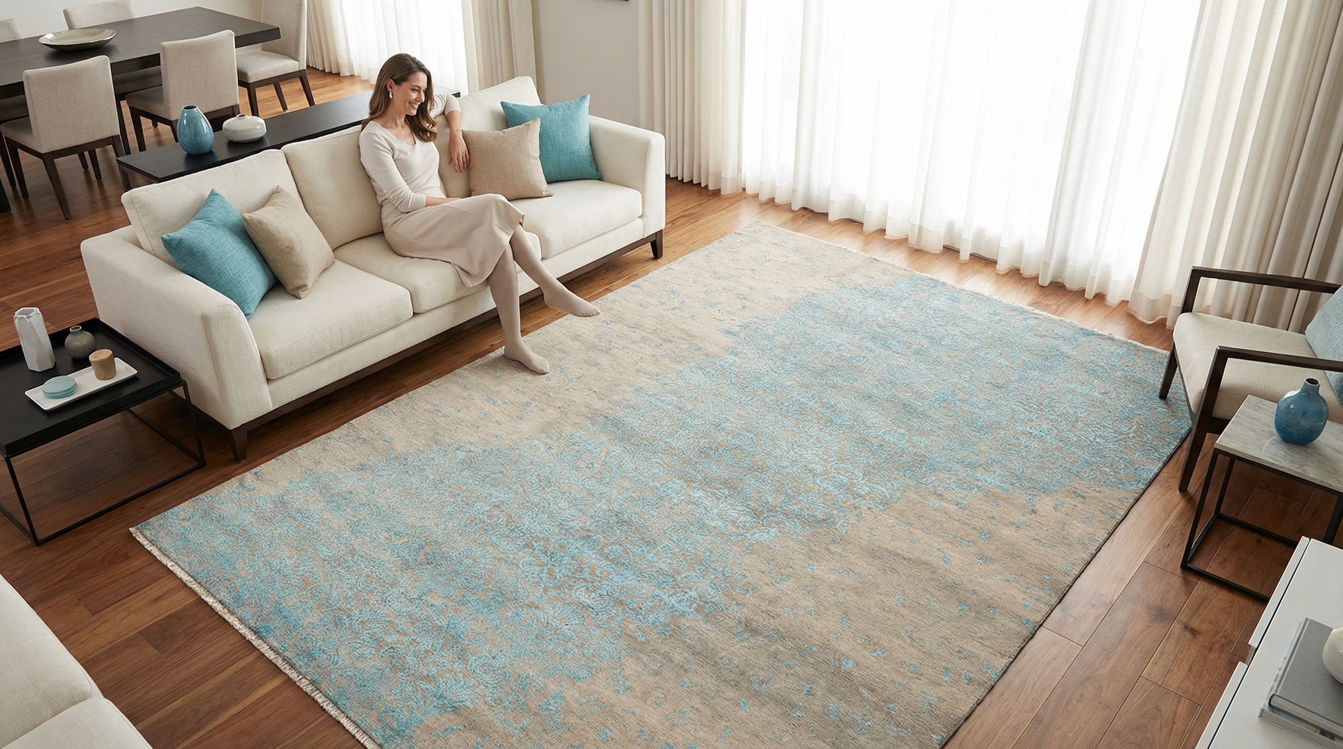 Unsere handgeknüpften Teppiche sind reine Handarbeit aus erlesenen Naturmaterialien. Echte Knoten sowie Schuss- und Kettfäden verleihen ihnen außergewöhnliche Langlebigkeit, Tiefe und bleibenden Wert - jeder Knoten ein Ausdruck echter Handwerkskunst. Handgefertigt und komplett ohne Kleber - für eine authentische, langlebige Qualität.Handgeknüpfte Teppiche - ob klassische Orientteppiche oder moderne Designs - lassen sich fachgerecht waschen, sind für den täglichen Gebrauch ...