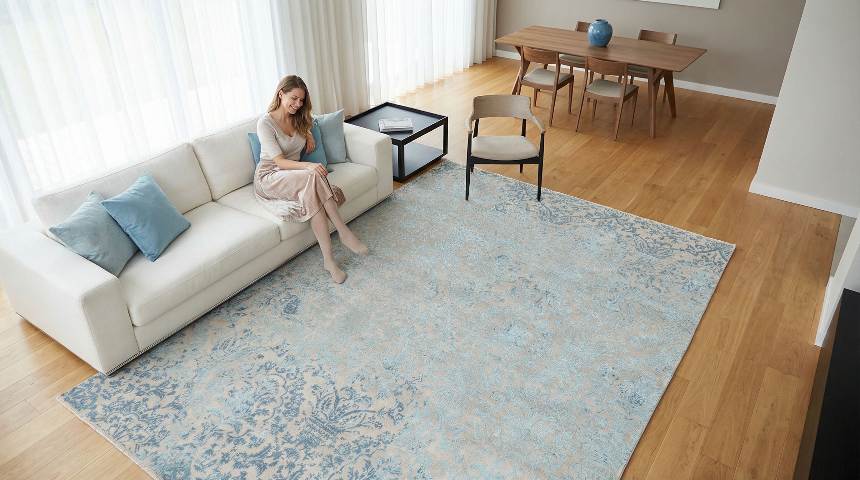 Unsere handgeknüpften Teppiche sind reine Handarbeit aus erlesenen Naturmaterialien. Echte Knoten sowie Schuss- und Kettfäden verleihen ihnen außergewöhnliche Langlebigkeit, Tiefe und bleibenden Wert - jeder Knoten ein Ausdruck echter Handwerkskunst. Handgefertigt und komplett ohne Kleber - für eine authentische, langlebige Qualität.Handgeknüpfte Teppiche - ob klassische Orientteppiche oder moderne Designs - lassen sich fachgerecht waschen, sind für den täglichen Gebrauch ...