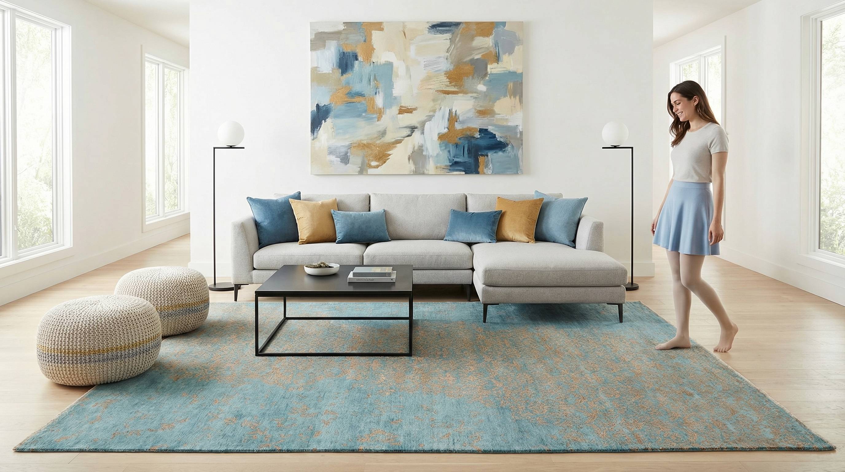 Unsere handgeknüpften Teppiche sind reine Handarbeit aus erlesenen Naturmaterialien. Echte Knoten sowie Schuss- und Kettfäden verleihen ihnen außergewöhnliche Langlebigkeit, Tiefe und bleibenden Wert - jeder Knoten ein Ausdruck echter Handwerkskunst. Handgefertigt und komplett ohne Kleber - für eine authentische, langlebige Qualität.Handgeknüpfte Teppiche - ob klassische Orientteppiche oder moderne Designs - lassen sich fachgerecht waschen, sind für den täglichen Gebrauch ...