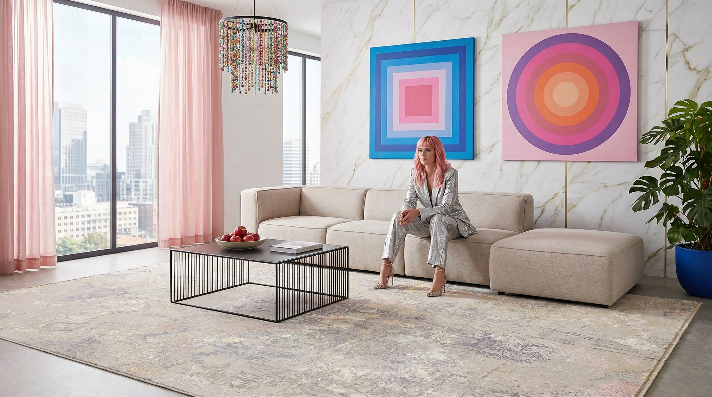 Dieser besonders helle und freundliche Eterno-Designerteppich besticht durch seine elegante Hauptfarbe Beige, die eine warme und einladende Atmosphäre schafft. Diese Grundfarbe wird kunstvoll durch Akzente in Hellgrau und zarten Pastelltönen ergänzt, die dem Teppich eine moderne und gleichzeitig zeitlose Ausstrahlung verleihen. Perfekt für alle, die einen hellen Teppich suchen, denen Weiß aber zu langweilig ist. Das Design des Teppichs ist abstrakt und erinnert an ein subtil verlaufendes ...mehr Beschreibung