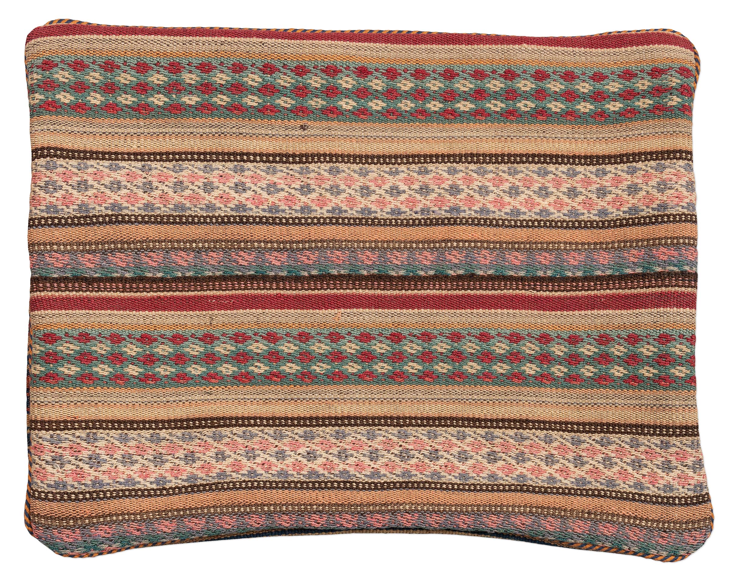 Alle bei unseren persischen Kissen verwendeten handgemachten Kelims auf Vorderseite und Rückseite sind wertvolle und authentische Stücke der persischen Nomaden und keine Industrieware. Diese Djidjim-Kelims sind alt oder antik, aus wertvoller handversponnener Schafwolle gewebt und mit Pflanzenfarben gefärbt. Jedes Stück ist ein echtes Unikat. Die Kanten sind mit einem sehr schönen Keder verziert. Die Innenseiten der Kissen sind zusätzlich mit Stoff unterfüttert und auf der Rückseite befindet sich ein Reissverschluss. Alle Kissen werden gebrauchsfertig mit eingepasster Füllung geliefert.
