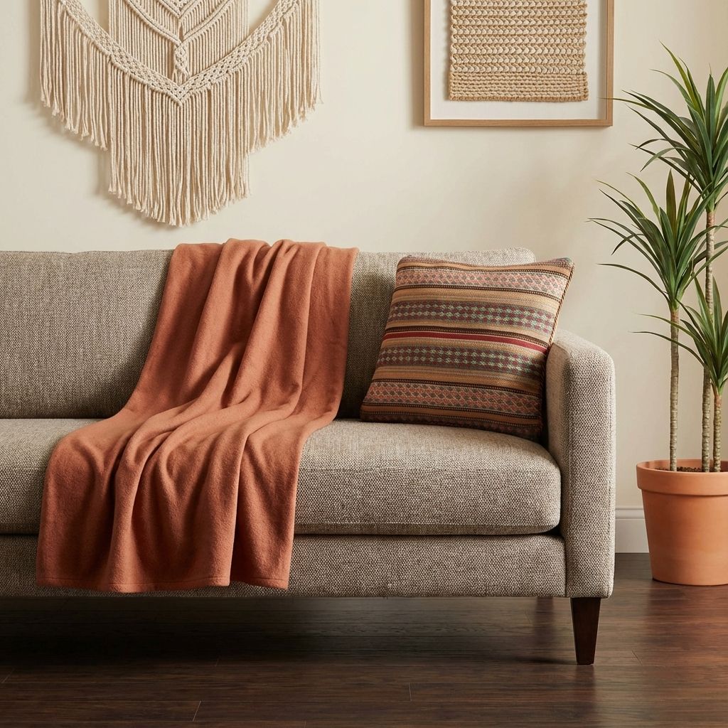 In einem reduzierten, modernen Ambiente fungiert dieses kunstvolle Kissen als raffinierter, wärmender Akzent, der die Brücke zwischen Tradition und Moderne schlägt. Das markante geometrische Rautenmuster wirkt zeitlos und bricht die Strenge minimalistischer Designermöbel gekonnt auf, ohne den klaren Look zu überladen. Die wundervoll warme Farbpalette verleiht kühlen, glatten Oberflächen sofort eine wohnliche Tiefe und eine hochwertige haptische Dimension. Es beweist eindrucksvoll, dass uralte Handwerkskunst perfekt in ein zeitgemäßes, designorientiertes Wohnambiente passt.
