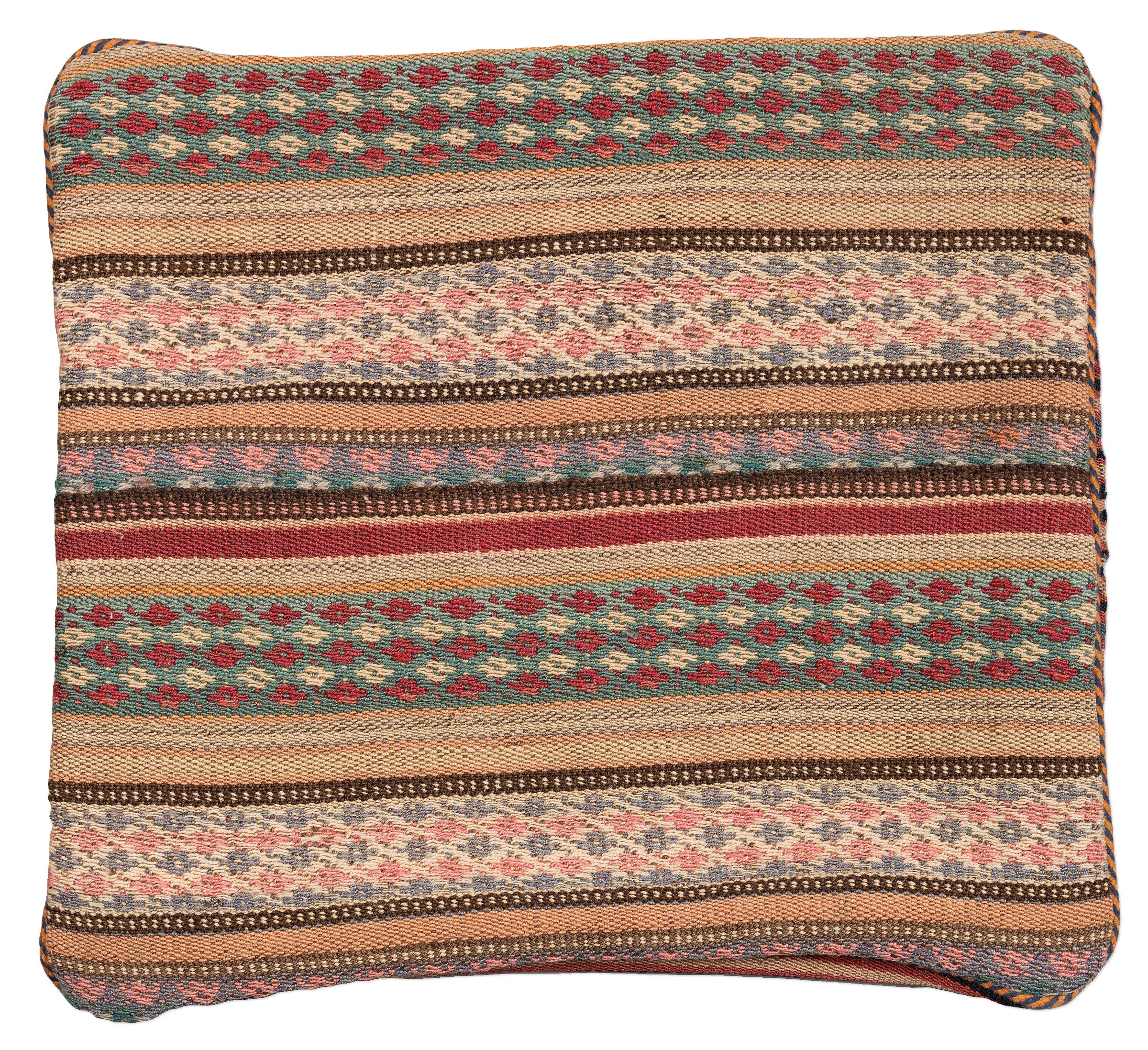 Schahsawan-Kissen: Alle bei unseren persischen Kissen verwendeten handgemachten Kelims auf Vorderseite und Rückseite sind wertvolle und authentische Stücke der persischen Nomaden und keine Industrieware. Diese Djidjim-Kelims sind alt oder antik, aus wertvoller handversponnener Schafwolle gewebt und mit Pflanzenfarben gefärbt. Jedes Stück ist ein echtes Unikat. Die Kanten sind mit einem sehr schönen Keder verziert. Die Innenseiten der Kissen sind zusätzlich mit Stoff unterfüttert und auf der Rückseite ...mehr Infos zur Herkunft