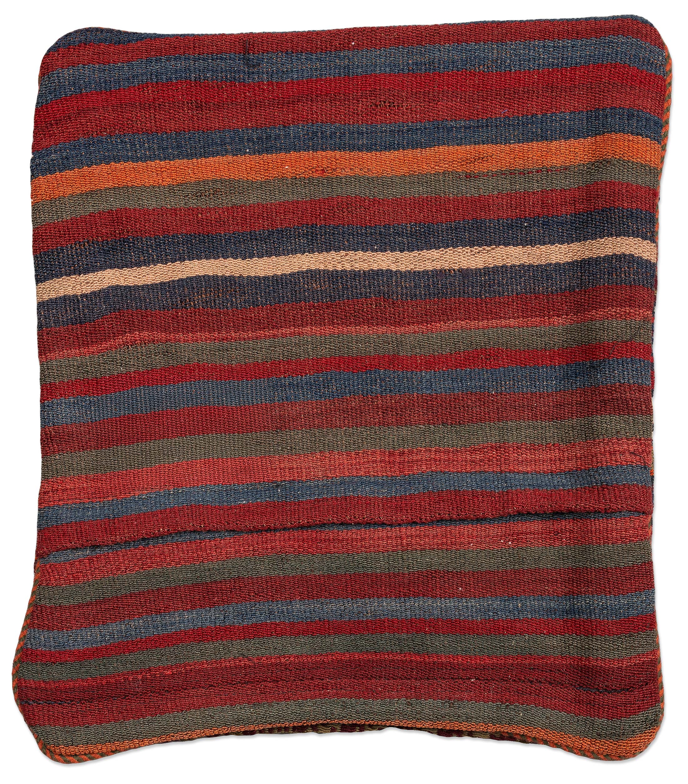 Dieses Zierkissen wurde aus alten und antiken Schahsawan-Kelims gefertigt, wobei handversponnene Schafwolle und natürliche Pflanzenfarben verwendet wurden. Jedes Stück ist ein Unikat und spiegelt die reiche Tradition persischer Nomaden wider. Die Kanten sind sorgfältig handvernäht und mit einem dekorativen Keder verziert. Die Rückseite besteht ebenfalls aus echtem, handgewebtem Kelim und ist mit einem praktischen Reißverschluss versehen. Das Kissen wird inklusive einer passenden Kissenfüllung geliefert, um Ihnen den besten Komfort zu bieten. Dieses Kissen ist nicht nur ein dekoratives Highlight, sondern auch ein Stück authentischer Handwerkskunst, das Ihrem Zuhause Wärme und Stil verleiht.