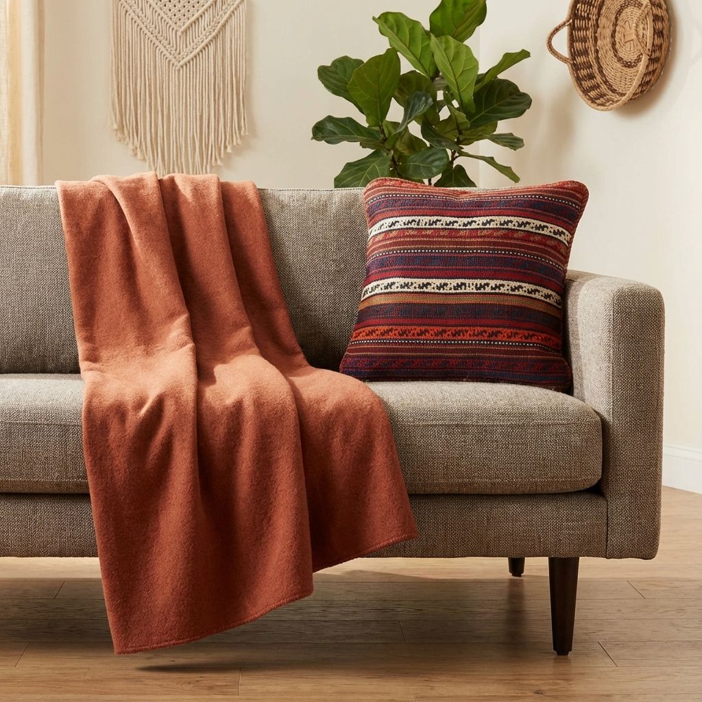 In einem reduzierten, modernen Ambiente fungiert dieses kunstvolle Kissen als raffinierter, wärmender Akzent, der die Brücke zwischen Tradition und Moderne schlägt. Das markante geometrische Rautenmuster wirkt zeitlos und bricht die Strenge minimalistischer Designermöbel gekonnt auf, ohne den klaren Look zu überladen. Die wundervoll warme Farbpalette verleiht kühlen, glatten Oberflächen sofort eine wohnliche Tiefe und eine hochwertige haptische Dimension. Es beweist eindrucksvoll, dass uralte Handwerkskunst perfekt in ein zeitgemäßes, designorientiertes Wohnambiente passt.