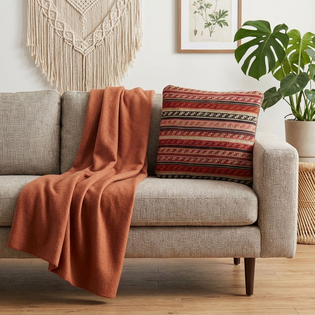 In einem reduzierten, modernen Ambiente fungiert dieses kunstvolle Kissen als raffinierter, wärmender Akzent, der die Brücke zwischen Tradition und Moderne schlägt. Das markante geometrische Rautenmuster wirkt zeitlos und bricht die Strenge minimalistischer Designermöbel gekonnt auf, ohne den klaren Look zu überladen. Die wundervoll warme Farbpalette verleiht kühlen, glatten Oberflächen sofort eine wohnliche Tiefe und eine hochwertige haptische Dimension. Es beweist eindrucksvoll, dass uralte Handwerkskunst perfekt in ein zeitgemäßes, designorientiertes Wohnambiente passt.