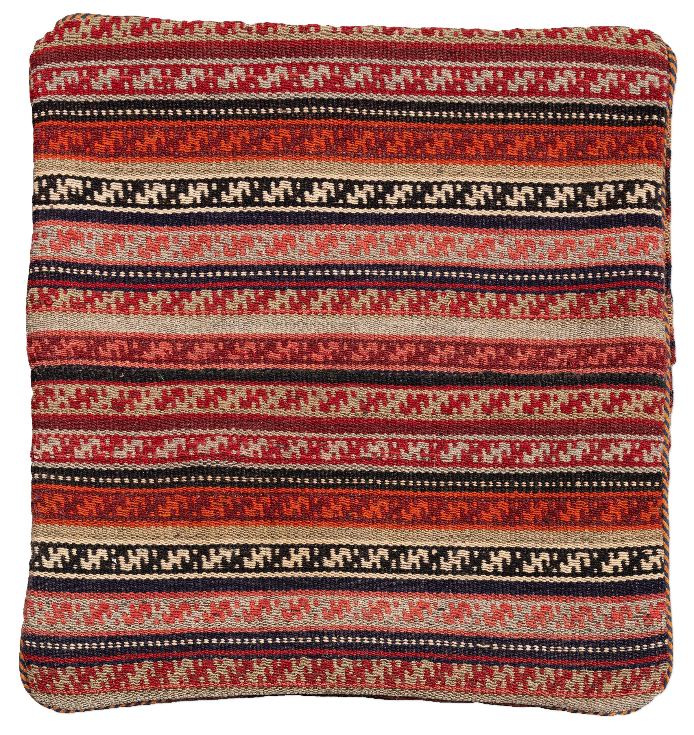 Alle bei unseren persischen Kissen verwendeten handgemachten Kelims auf Vorderseite und Rückseite sind wertvolle und authentische Stücke der persischen Nomaden und keine Industrieware. Diese Djidjim-Kelims sind alt oder antik, aus wertvoller handversponnener Schafwolle gewebt und mit Pflanzenfarben gefärbt. Jedes Stück ist ein echtes Unikat. Die Kanten sind mit einem sehr schönen Keder verziert. Die Innenseiten der Kissen sind zusätzlich mit Stoff unterfüttert und auf der Rückseite befindet sich ein Reissverschluss. Alle Kissen werden gebrauchsfertig mit eingepasster Füllung geliefert.