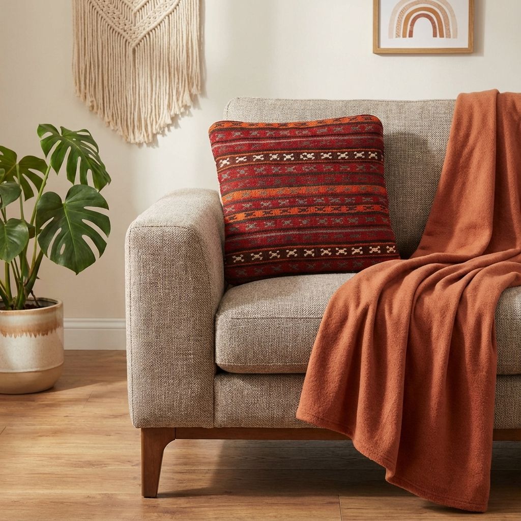 In einem reduzierten, modernen Ambiente fungiert dieses kunstvolle Kissen als raffinierter, wärmender Akzent, der die Brücke zwischen Tradition und Moderne schlägt. Das markante geometrische Rautenmuster wirkt zeitlos und bricht die Strenge minimalistischer Designermöbel gekonnt auf, ohne den klaren Look zu überladen. Die wundervoll warme Farbpalette verleiht kühlen, glatten Oberflächen sofort eine wohnliche Tiefe und eine hochwertige haptische Dimension. Es beweist eindrucksvoll, dass uralte Handwerkskunst perfekt in ein zeitgemäßes, designorientiertes Wohnambiente passt.