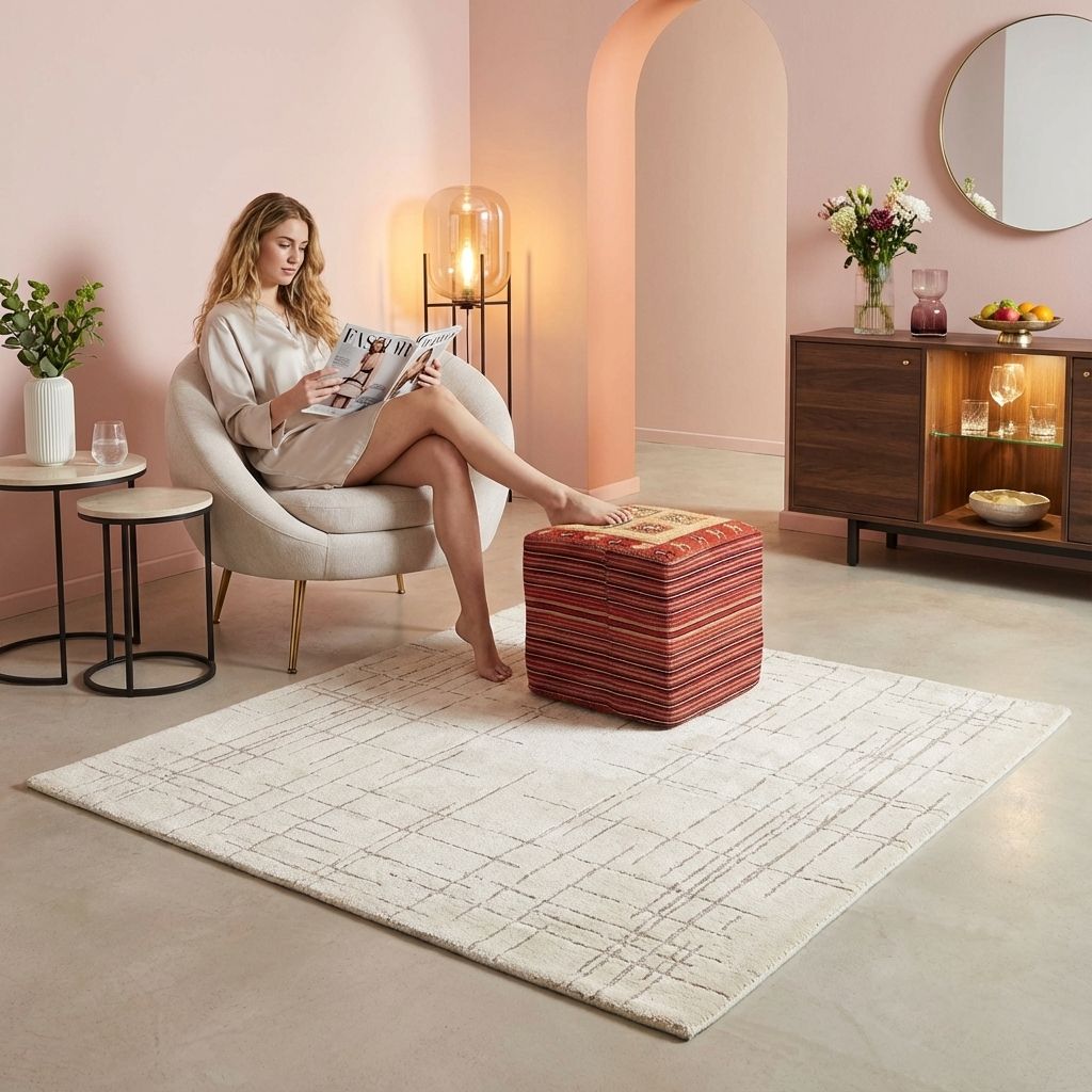Afschar-Tabii-Sitzwürfel: Entdecken Sie unseren äußerst hochwertigen, vollständig handgemachten und langlebigen Sitzwürfel, der aus echten süd- und nordpersischen Webkelims gefertigt ist. Die Naturfarben und die handversponnene Schafwolle verleihen diesem vielseitig verwendbaren Hocker eine authentische und zeitlose Ausstrahlung. Die Oberseite besteht aus einem faszinierenden Afschar-Tabii-Sumack-Kelim, während alle fünf Seitenteile aus handgemachten alten und antiken Dscha-Dschim-Kelims bestehen (kein ...mehr Infos zur Herkunft