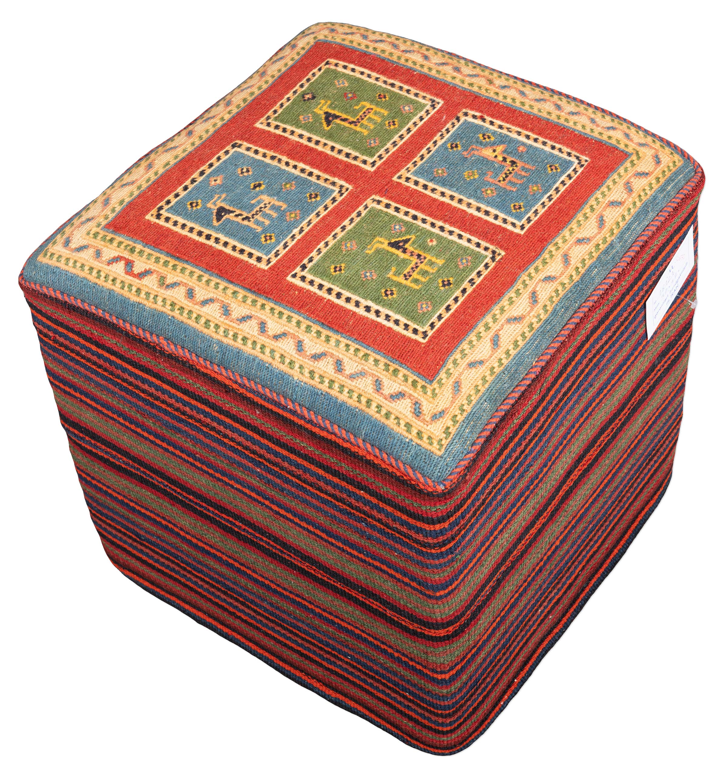 Afschar-Tabii-Sitzwürfel: Entdecken Sie unseren äußerst hochwertigen, vollständig handgemachten und langlebigen Sitzwürfel, der aus echten süd- und nordpersischen Webkelims gefertigt ist. Die Naturfarben und die handversponnene Schafwolle verleihen diesem vielseitig verwendbaren Hocker eine authentische und zeitlose Ausstrahlung. Die Oberseite besteht aus einem faszinierenden Afschar-Tabii-Sumack-Kelim, während alle fünf Seitenteile aus handgemachten alten und antiken Dscha-Dschim-Kelims bestehen (kein ...mehr Infos zur Herkunft