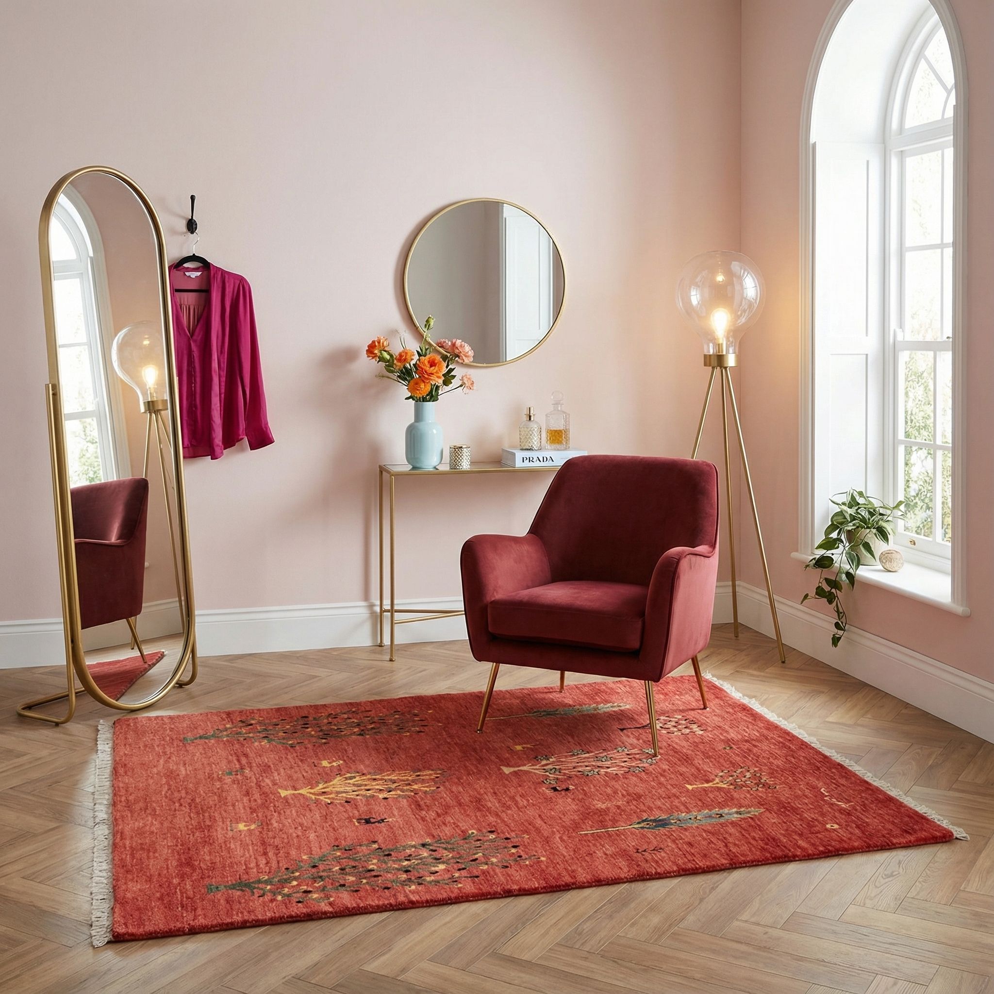 Dieser handgeknüpfte Bidjar-Novum-Teppich aus Persien präsentiert sich in einem warmen, satten Rotton als Hauptfarbe. Ergänzt wird dieses Farbspiel durch Akzente in tiefem Grün und leuchtendem Goldgelb, die dem Teppich eine lebendige und harmonische Ausstrahlung verleihen. Das Motiv zeigt eine moderne Interpretation traditioneller Muster, die an die mystischen Schätze alter Nomadenvölker erinnern. Die feine Knüpfung mit etwa 200.000 Knoten pro Quadratmeter zeugt von höchster Handwerkskunst.