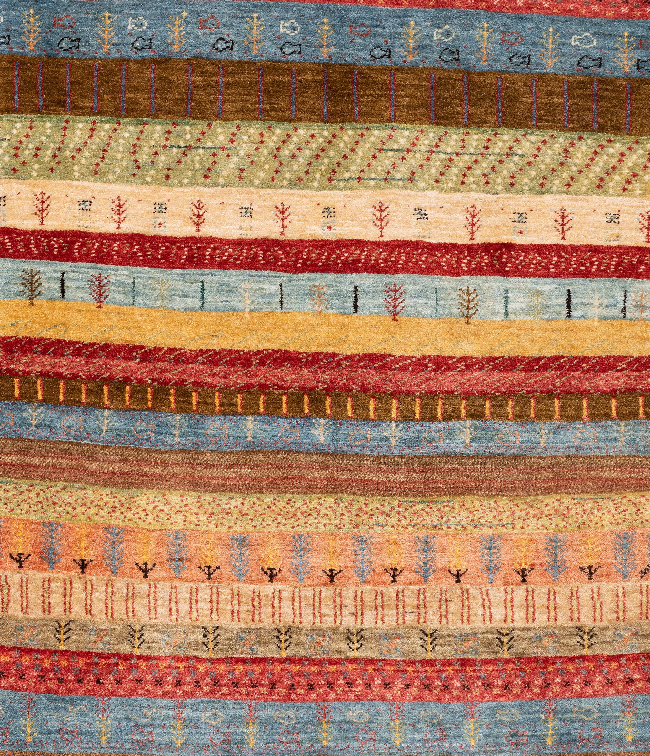 Bidjar-Novum: Dieser Teppich ist eine limitierte hauseigene Weiterentwicklung der Kashkulibaft/Gabbeh/Amalehbaft/Rizbaft Teppiche, welche im Hochland des nordwestpersischen Kurdestan in der Stadt Bidjar geknüpft werden. Mit seiner extremen Höhenlage von 1920 Metern wird Bidjar auch als Dach Persiens bezeichnet. Bei diesen unikalen Stücken wird der mystische Musterschatz alter Nomadenvölker so arrangiert, dass eine moderne Bildwirkung entsteht. Die Knüpfer haben bei der Gestaltung der Musterung größte ...mehr Infos zur Herkunft