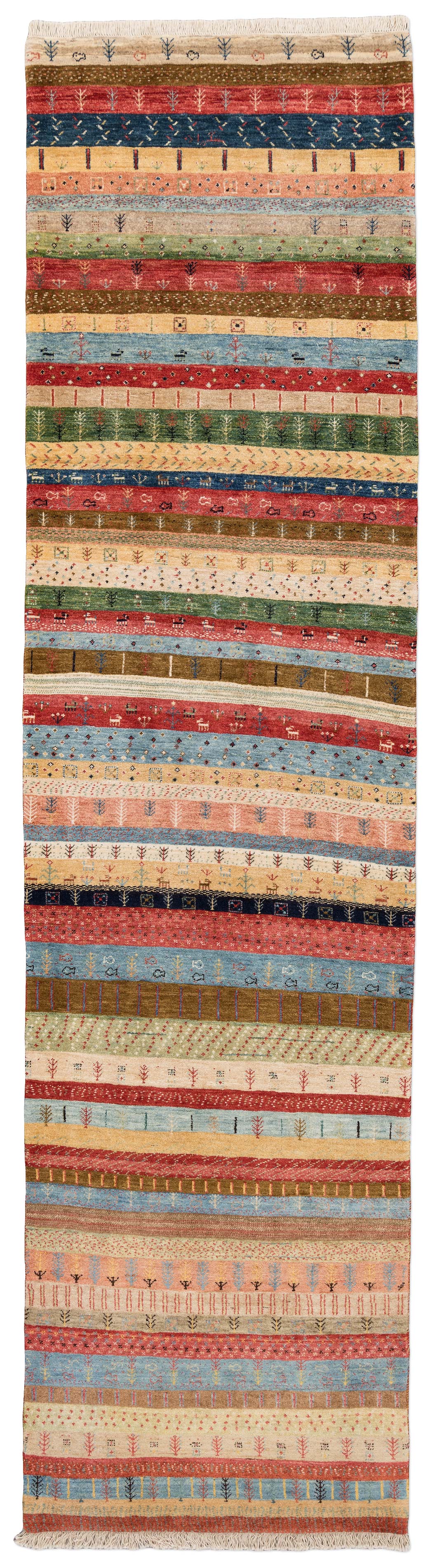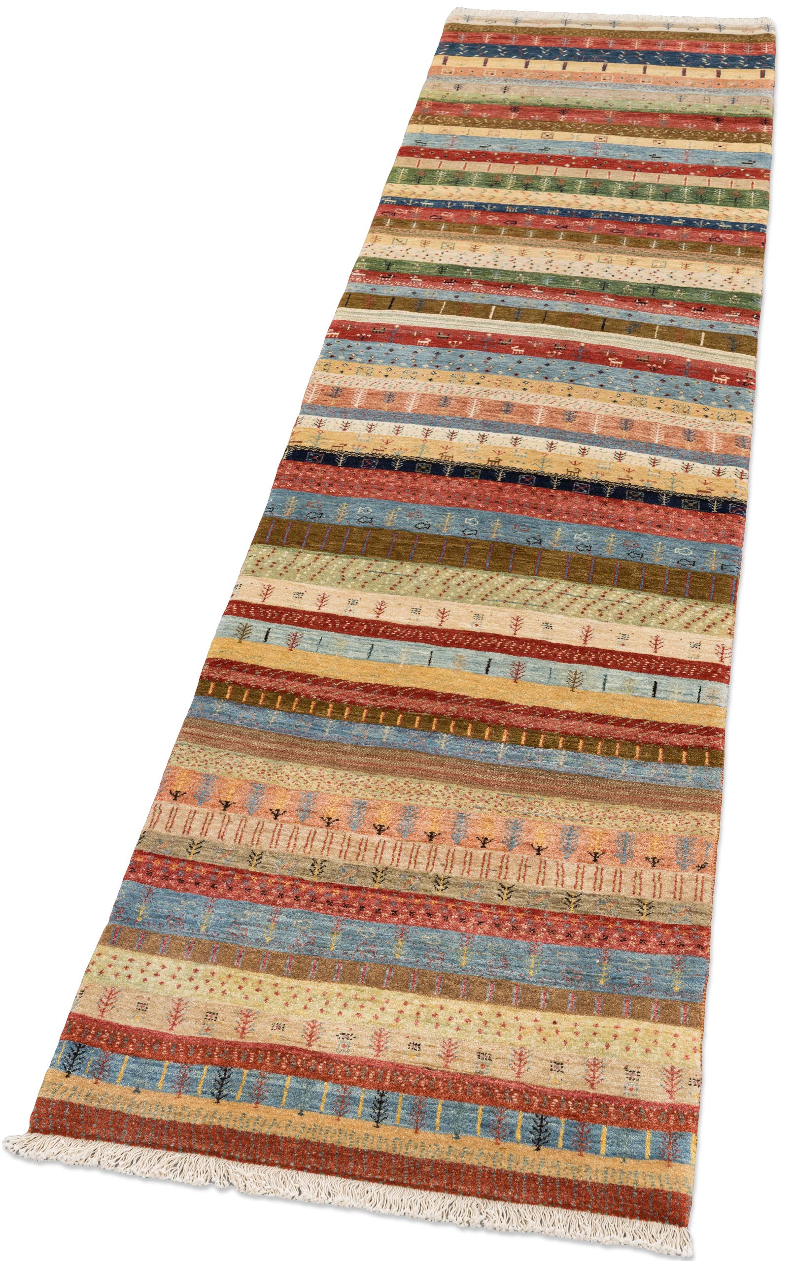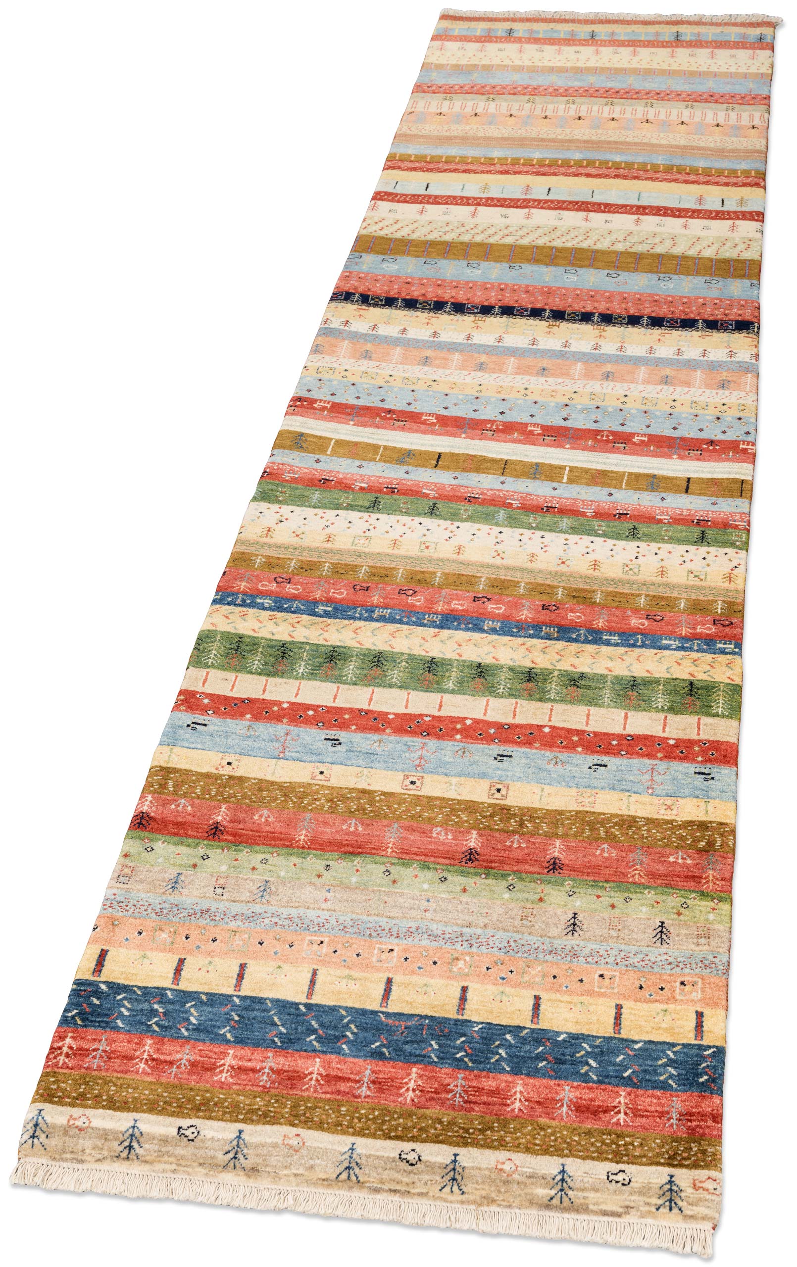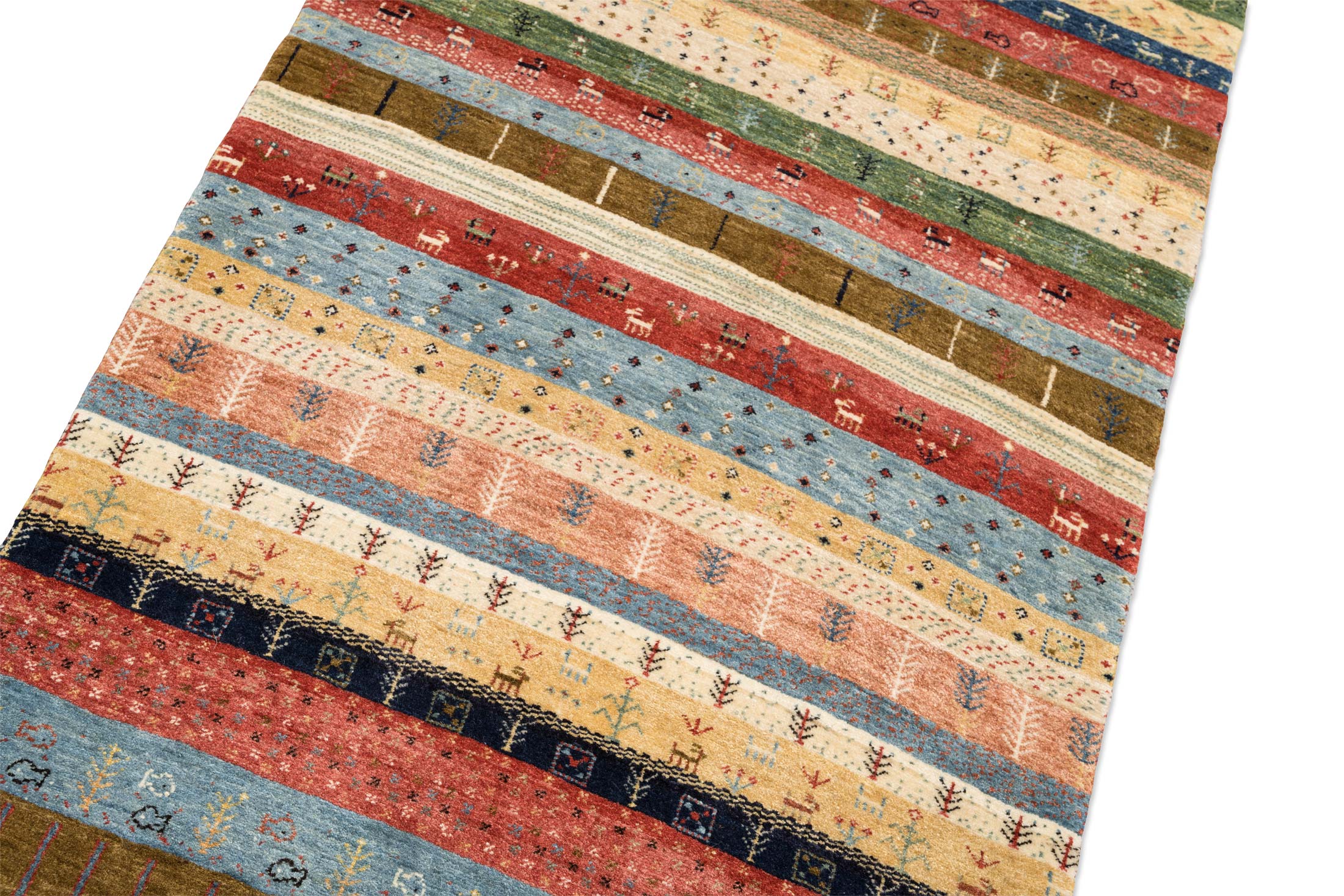 Bidjar-Novum: Dieser Teppich ist eine limitierte hauseigene Weiterentwicklung der Kashkulibaft/Gabbeh/Amalehbaft/Rizbaft Teppiche, welche im Hochland des nordwestpersischen Kurdestan in der Stadt Bidjar geknüpft werden. Mit seiner extremen Höhenlage von 1920 Metern wird Bidjar auch als Dach Persiens bezeichnet. Bei diesen unikalen Stücken wird der mystische Musterschatz alter Nomadenvölker so arrangiert, dass eine moderne Bildwirkung entsteht. Die Knüpfer haben bei der Gestaltung der Musterung größte