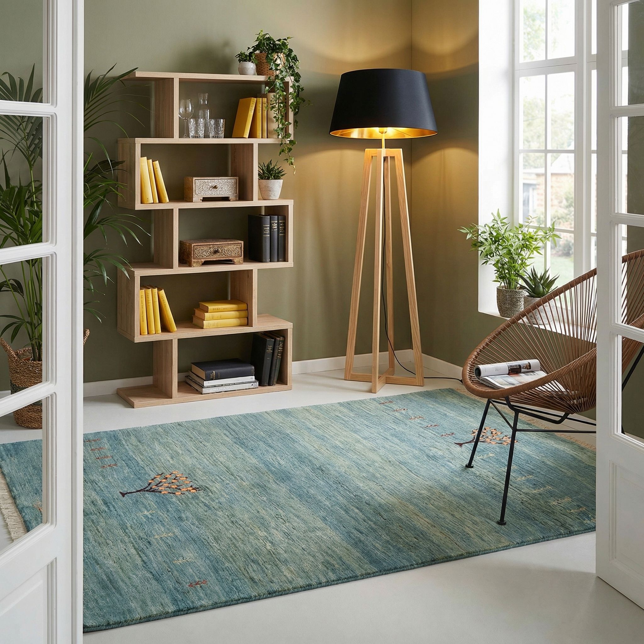 Die sanften, fast pastelligen Blautöne und die natürlichen Baummotive harmonieren wunderbar mit der frischen und leichten Ausstrahlung des modernen Landhausstils. Hochwertige Naturmaterialien wie die handversponnene Schafwolle sind essenziell für diesen Look, da sie Wärme und ländliche Bodenständigkeit vermitteln, ohne altbacken zu wirken. Die extrem strapazierfähige Qualität des Bidjar-Novum macht ihn zum idealen Begleiter für ein belebtes, familiäres Wohnambiente, in dem Langlebigkeit und Komfort zählen. Durch die Verbindung von traditioneller Handwerkskunst mit einer luftigen, modernen Optik wird der rustikale Charme des Country-Styles elegant aufgewertet.
