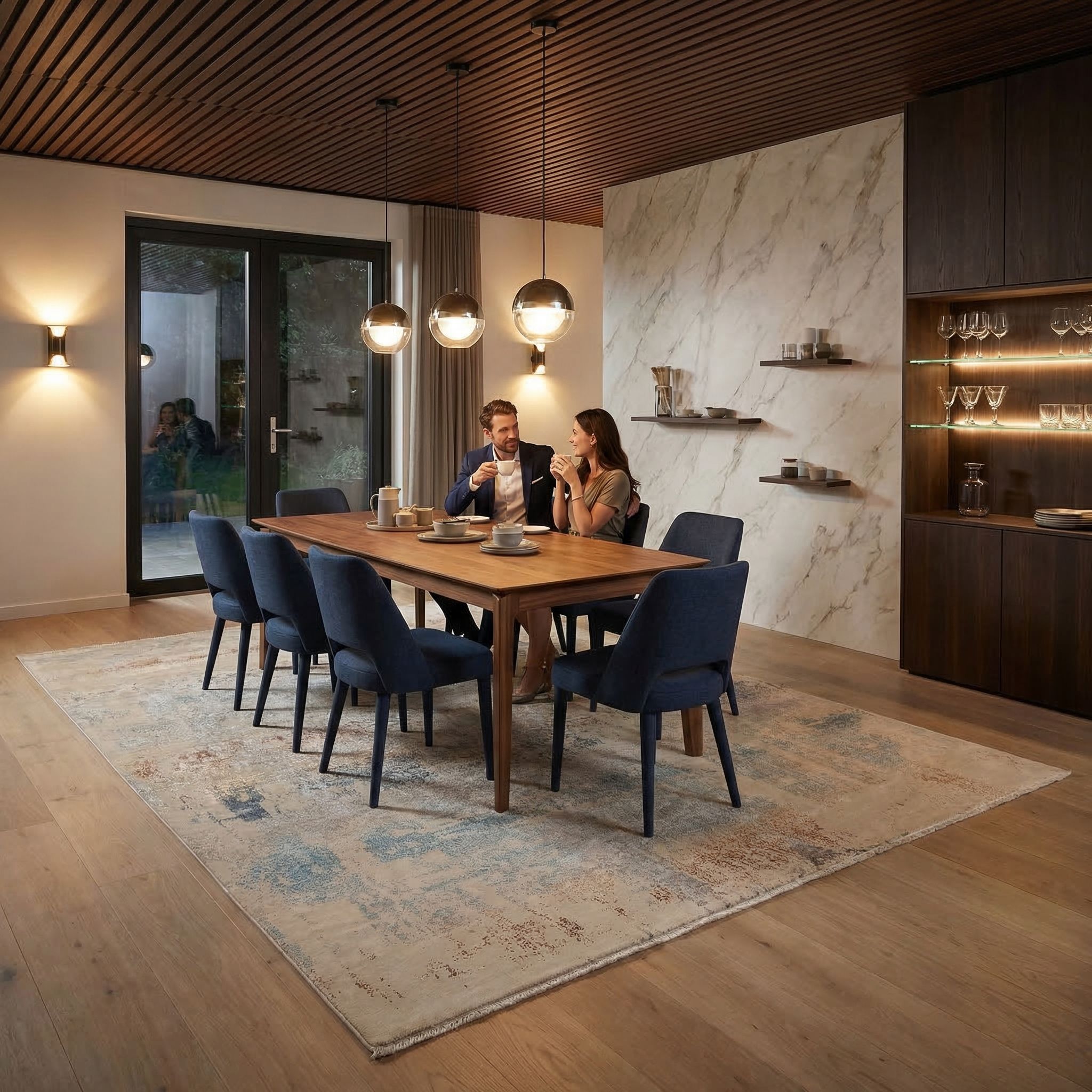 Der New-Country-Style lebt von der Verbindung aus ländlicher Gemütlichkeit und moderner Frische, wofür dieser Teppich mit seinen natürlichen Materialien und den erdigen Rost-Akzenten die perfekte Basis bildet. Die strapazierfähige, handversponnene Schafwolle passt hervorragend zu Leinenstoffen, Fellen und massivem Holz, während das moderne Design verhindert, dass der Raum altbacken wirkt. Durch die klimaneutrale Bambusseide und die Herstellung in Hausfleiß erzählt der Teppich eine Geschichte von Handwerk und Naturverbundenheit, die den Geist des modernen Landhauslebens widerspiegelt. Er verleiht dem Raum eine geerdete Eleganz und lädt durch seine weiche Haptik sofort zum Wohlfühlen ein.