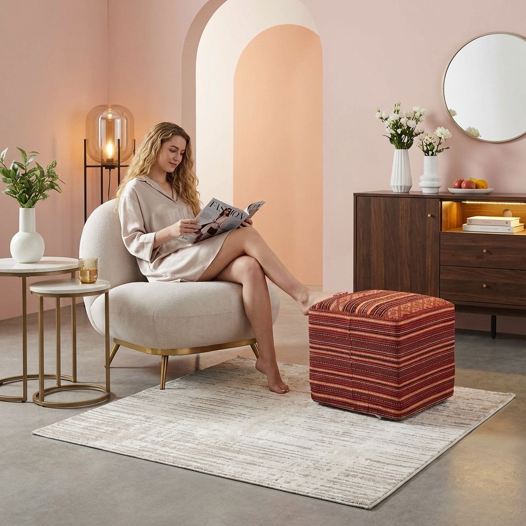 Schahsawan-Sitzwürfel: Tauchen Sie ein in eine Welt ultimativer Bequemlichkeit und zeitloser Eleganz mit unserem exquisiten Hocker, der aus authentischen Nomadenkelims aus dem südlichen und nördlichen Persien gefertigt wurde. Dieser Hocker verkörpert wahre Handwerkskunst und garantiert Ihnen unübertroffene Langlebigkeit.Unsere Kelim-Hocker werden aus den wertvollsten Naturmaterialien hergestellt, darunter handversponnene Schafwolle, die ihnen eine außergewöhnliche Wertigkeit verleiht. Jeder ...