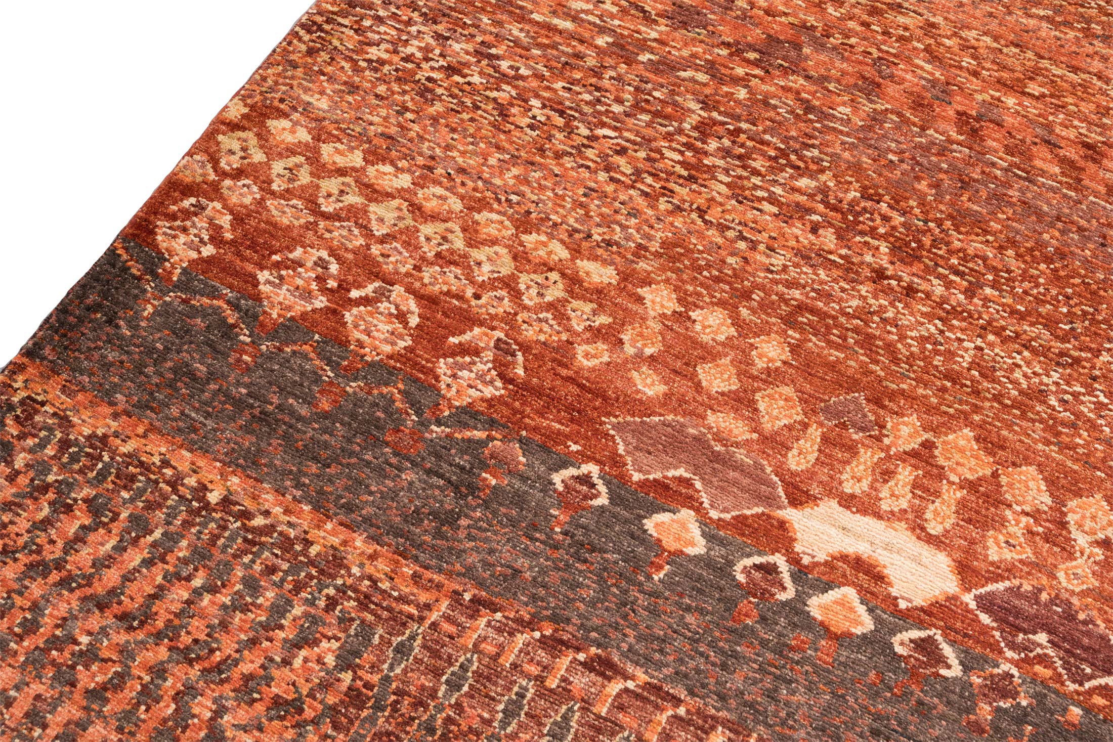 Dieser handgeknüpfte Teppich aus Afghanistan, bekannt als Gomal, präsentiert sich in einer dominanten, warmen Rotnuance. Ergänzt wird dieses kräftige Rot durch subtile Orangetöne und erdige Brauntöne, die dem Teppich eine lebendige und zugleich harmonische Ausstrahlung verleihen. Die Musterung ist vielseitig und reicht von geometrischen Formen bis hin zu organischen Linien, was dem Teppich eine dynamische und dennoch ausgewogene Erscheinung verleiht. Gefertigt aus der besten Ghazni-Hochlandschafwolle, beeindruckt dieser Teppich durch seine außergewöhnliche Strapazierfähigkeit. Die handversponnene Schafwolle, reich an Lanolin und bekannt für ihre lange Stapellänge, sorgt dafür, dass sich der Flor selbst bei intensiver Nutzung immer wieder aufrichtet. Naturfarben unterstreichen die Authentizität und Exklusivität dieses Teppichs, der nicht nur als Bodenbelag, sondern auch als Kunstwerk betrachtet werden kann. Ein wahrhaftiges Schmuckstück, das Ihrem Raum Wärme und Charakter verleiht.