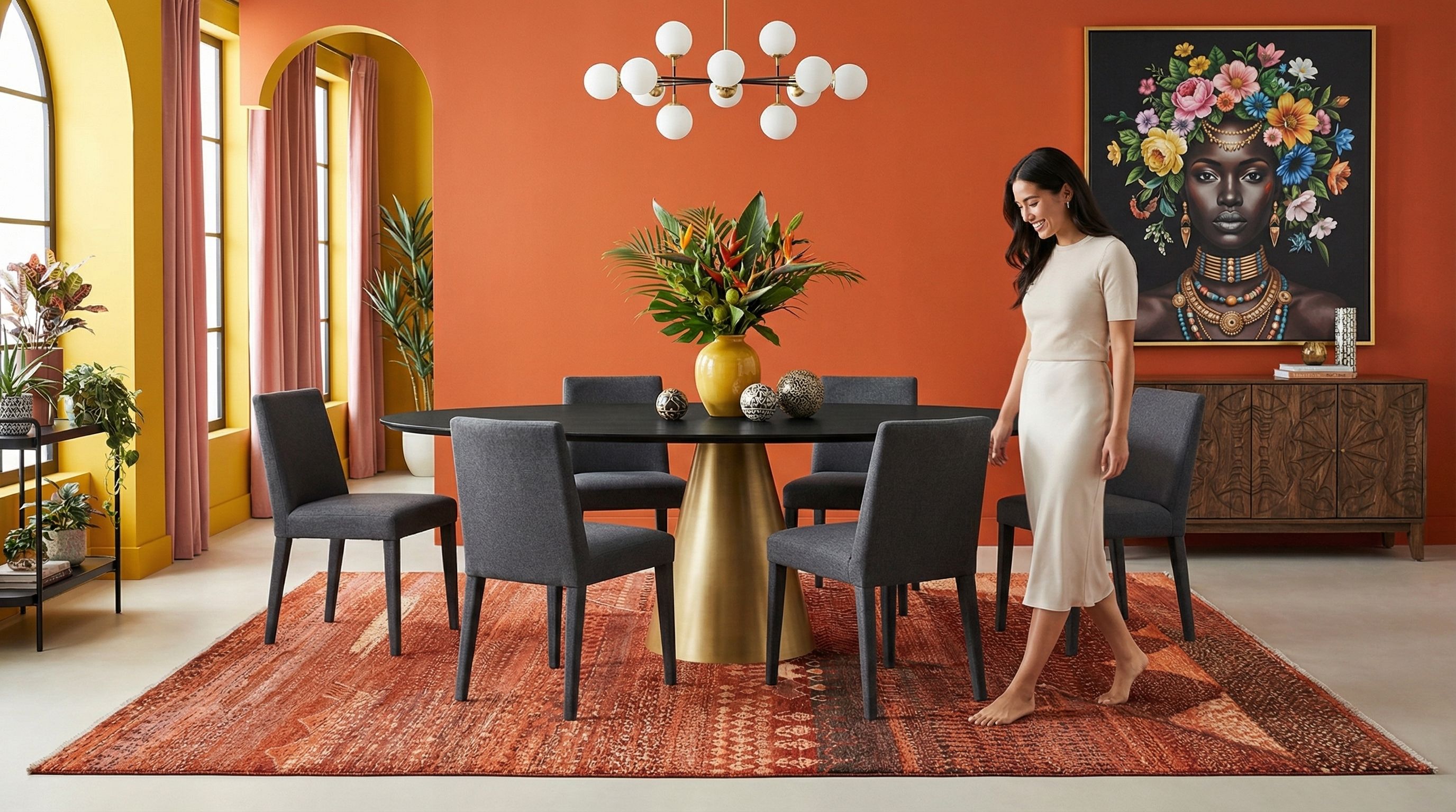Als gekonnter Stilbruch verleiht dieser Teppich dem oft kühlen, rohen Industrial-Style die dringend benötigte Portion Wohnlichkeit und Wärme. Die kräftigen Rost- und Rottöne bilden einen faszinierenden, weichen Kontrast zu harten Materialien wie Sichtbeton, dunklem Metall und unverputzten Ziegelwänden. Die robuste Ghazni-Wolle unterstreicht dabei den Anspruch an Langlebigkeit und ehrliche, "unperfekte" Materialien, der diesem Wohnstil zugrunde liegt. So schaffen Sie ein modernes Loft-Ambiente, das trotz industrieller Strenge einladend wirkt und haptisch erlebbar bleibt.