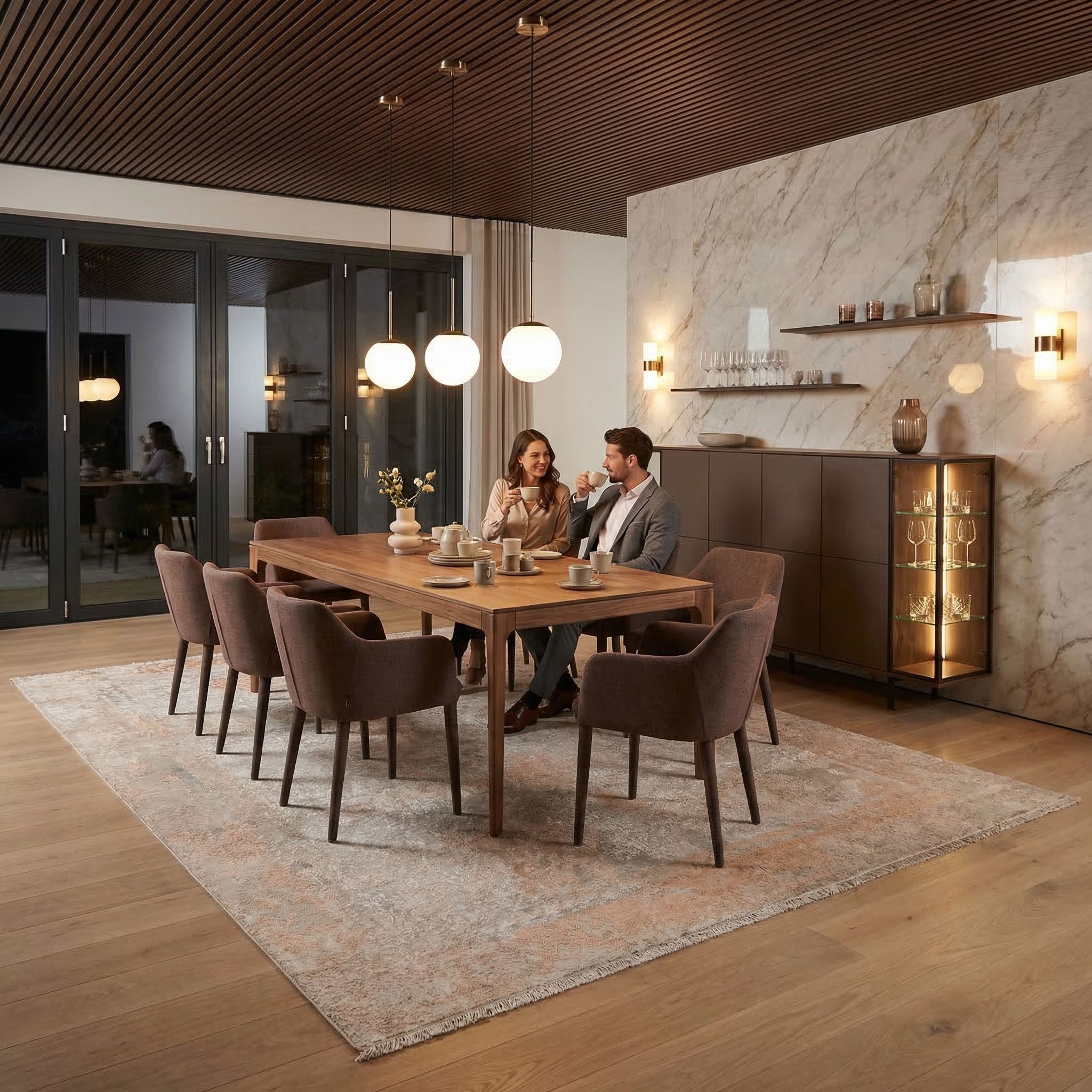 In einem Loft oder einer Wohnung im Industrial-Look fungiert dieser Teppich als gekonnter und hochwertiger Stilbruch, der dem rauen Ambiente von Beton, Stahl und unverputzten Wänden eine notwendige Portion Wohnlichkeit verleiht. Der angesagte Vintage-Look mit seiner scheinbar verlebten Struktur korrespondiert hervorragend mit dem unperfekten Charme des Industriellen, während die Materialien gleichzeitig puren Luxus ausstrahlen. Die glänzende Textur der Bambusseide bricht die Härte des Raumes auf und schafft eine spannende visuelle Dynamik zwischen grober Architektur und feinstem Handwerk. So wird der kühle Industrie-Chic durch die Wärme der handversponnenen Schafwolle emotional aufgeladen und veredelt.