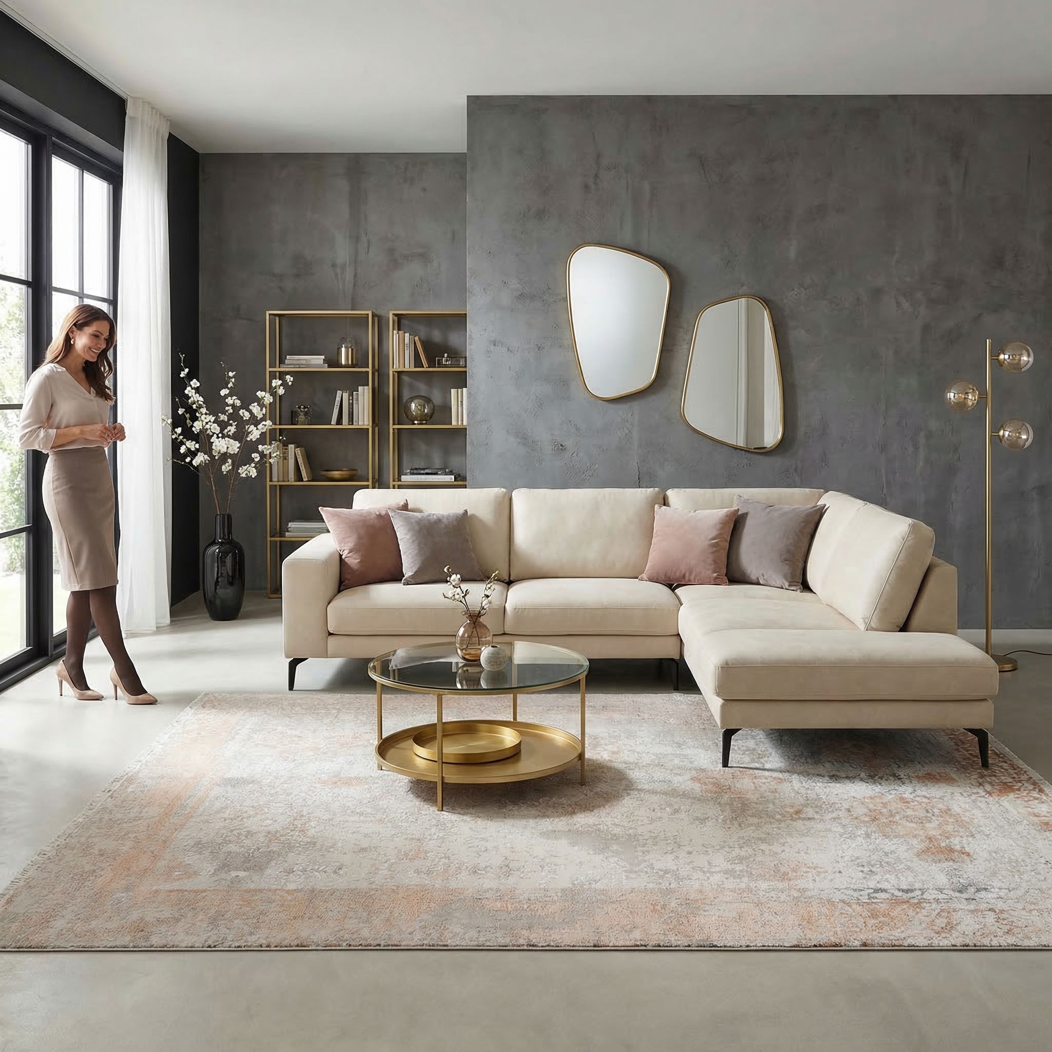 Für den Glam-Style ist dieser Teppich eine exzellente Wahl, da der hohe Anteil an erstklassiger Bambusseide für einen wunderschönen, lichtreflektierenden Glanz sorgt, der pure Eleganz ausstrahlt. Die Kombination aus dem feinen persischen Knoten und der seidigen Haptik unterstreicht ein Ambiente voller Samt, Goldakzenten und Spiegeln, ohne dabei kitschig zu wirken. Die zarten Pastelltöne bieten eine sophistizierte Bühne für prunkvolle Möbelstücke und verleihen dem Raum eine luftige, aber dennoch aristokratische Leichtigkeit. Mit diesem Designerstück investieren Sie in zeitlose Klasse und eine Textur, die Luxus nicht nur sichtbar, sondern auch fühlbar macht.