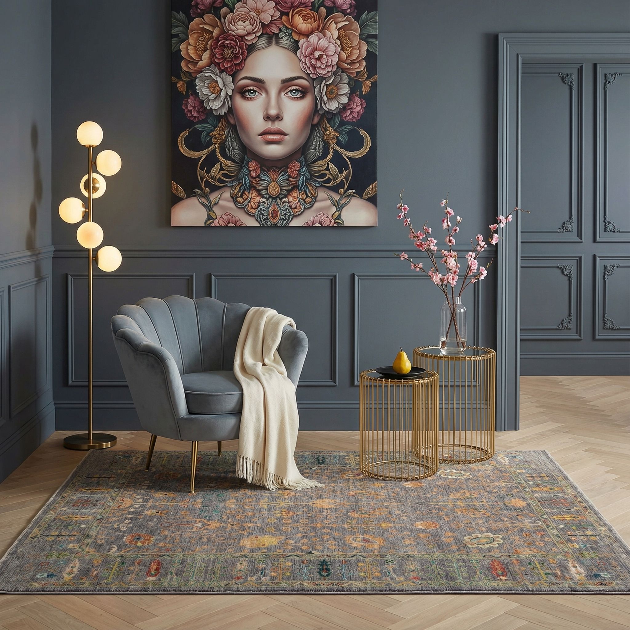 Dieser Teppich ist wie geschaffen für den New-Country-Style, da er die Sehnsucht nach Natürlichkeit und ländlicher Geborgenheit auf luxuriöse Weise interpretiert. Die sanften, floralen Ornamente und die warmen Erdtöne der reinen Pflanzenfarben harmonieren perfekt mit hellen Hölzern, Leinenstoffen und der unbeschwerten Leichtigkeit dieses Wohnstils. Durch die Verwendung von handversponnener Schafwolle strahlt der Teppich eine urschprüngliche Gemütlichkeit aus, die dem Raum sofort eine wohnliche Seele verleiht. Er unterstreicht den Anspruch auf Nachhaltigkeit und Qualität, ohne dabei aufdringlich zu wirken, und fügt sich nahtlos in das harmonische Gesamtbild ein.