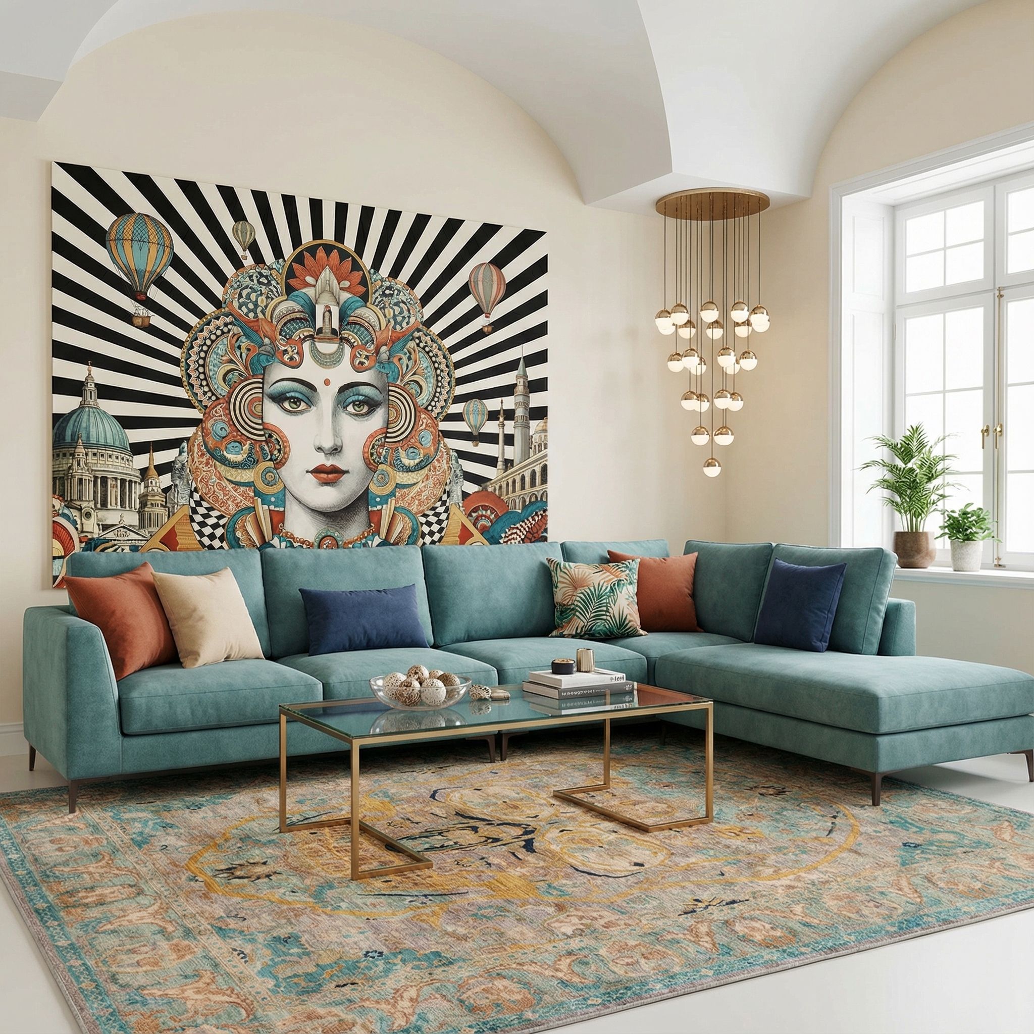 Im modernen Contemporary-Interieur dient dieser Teppich als „Art on the Floor“, der wie ein Gemälde den Raum definiert und sofortige Aufmerksamkeit auf sich zieht. Die feine Zeichnung des Totenkopf-Motivs, eingebettet in klassische Ornamente, spielt gekonnt mit der Wahrnehmung und beweist, dass traditionelle Knüpftechnik absolut zeitgenössisch interpretiert werden kann. Durch die hochfeine Knüpfung und den seidigen Glanz der Hochlandwolle unterstreicht das Stück den Anspruch an kompromisslose Qualität und modernes Luxusverständnis. Er verwandelt einen schlichten Raum in eine kuratierte Galerie und beweist Ihren Mut zu außergewöhnlichem, anspruchsvollem Design.