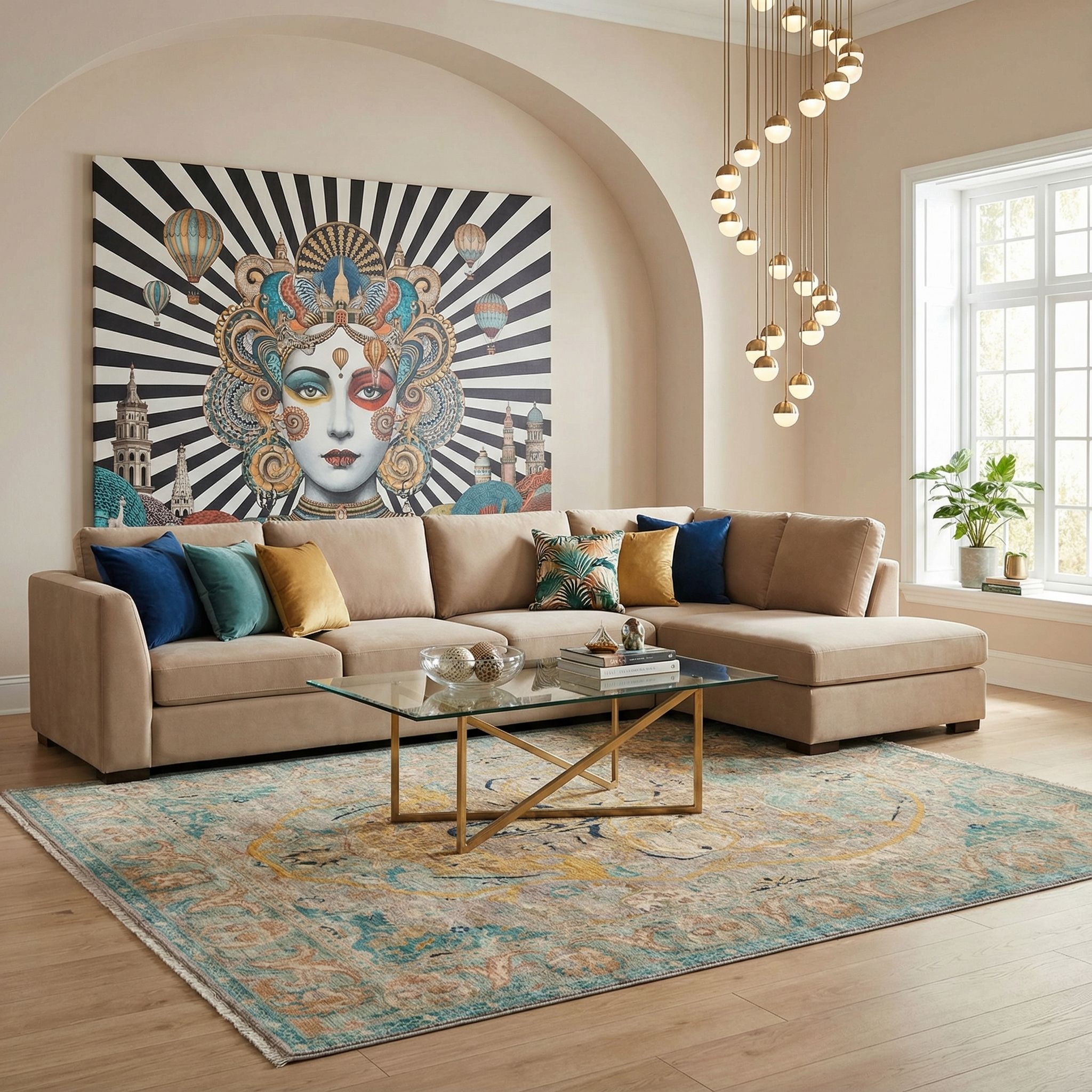 Für den Ethno-Style ist dieser Teppich ein absolutes Meisterwerk, da er traditionelle afghanische Knüpfkunst mit der kulturellen Symbolik Mexikos auf faszinierende Weise verbindet. Die Verwendung rein natürlicher Materialien und Pflanzenfarben unterstreicht den ursprunglichen Charakter und die tiefe Verbundenheit zu globalen Handwerkstraditionen. Als Herzstück des Raumes spiegelt dieser Ferahan-Novum die Wertschätzung für Weltkultur wider und bringt durch seine warme Farbgebung eine erdige, aber exklusive Atmosphäre in Ihr Heim. Es ist ein Investitionsobjekt, das handwerkliche Präzision mit dem Charme eines echten Reiseandenkens auf höchstem Qualitätsniveau vereint.