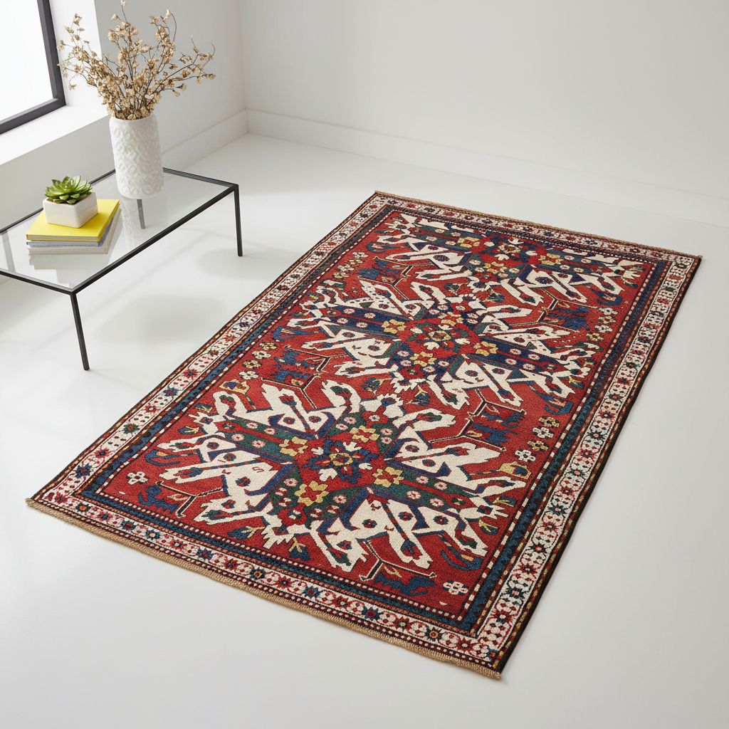 Adlerkazak: Dieser Adlerkazak wurde von Armeniern im Südkaukasus in der Region Karabagh (Karabach) geknüpft. Karabagh liegt geografisch gelegen zwischen Armenien und Aserbaidjan. Diese sehr gefragten Exemplare werden auch -Sunburst- Kazak oder -Chelaberd- genannt. Sie wurden im südöstlichen Kaukasus gefertigt, an der Grenze zu Nordpersien. Das Kaukasusgebirge erstreckt sich vom Kaspischen bis zum Schwarzen Meer und umfasst Teile des heutigen Aserbaidschans und Südrusslands. In den Dörfern dieser ...mehr Infos zur Herkunft