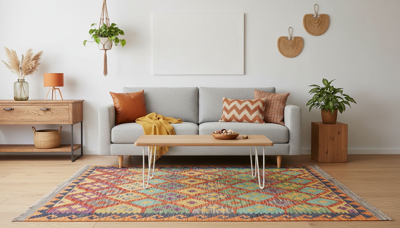 Handgewebte Kelims werden auf einem Webstuhl hergestellt, welcher zuerst aus horizontalen aufgespannten Fäden (der Kette) besteht. Die Kette kann aus Baumwolle oder Schafwolle oder in seltenen Fällen aus Seide bestehen. Durch die Kette wird dann vertikal (der Schuss) ab wechselnd oberhalb und unterhalb der Kette durchgezogen. Der Webvorgang ist relativ einfach, aber er erfordert Geschick und Erfahrung, um ein gleichmäßiges und kunstvolles Bildmuster zu erzeugen. Die Qualität und ...mehr Infos zur Handarbeit