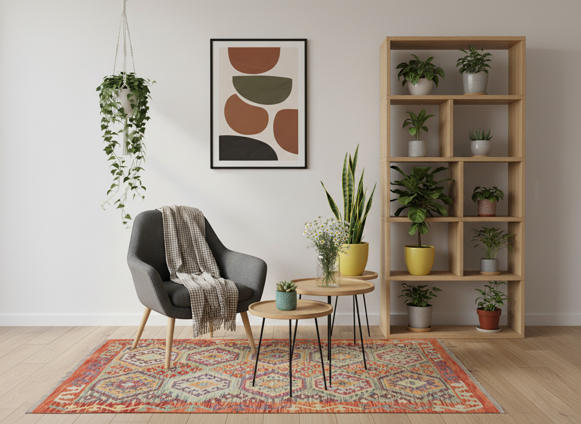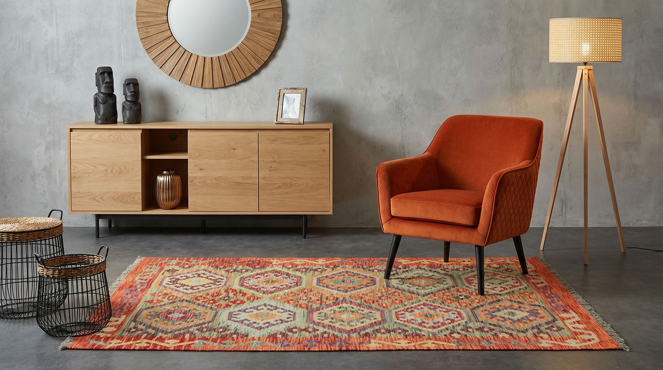 Handgewebte Kelims werden auf einem Webstuhl hergestellt, welcher zuerst aus horizontalen aufgespannten Fäden (der Kette) besteht. Die Kette kann aus Baumwolle oder Schafwolle oder in seltenen Fällen aus Seide bestehen. Durch die Kette wird dann vertikal (der Schuss) ab wechselnd oberhalb und unterhalb der Kette durchgezogen. Der Webvorgang ist relativ einfach, aber er erfordert Geschick und Erfahrung, um ein gleichmäßiges und kunstvolles Bildmuster zu erzeugen. Die Qualität und ...mehr Infos zur Handarbeit