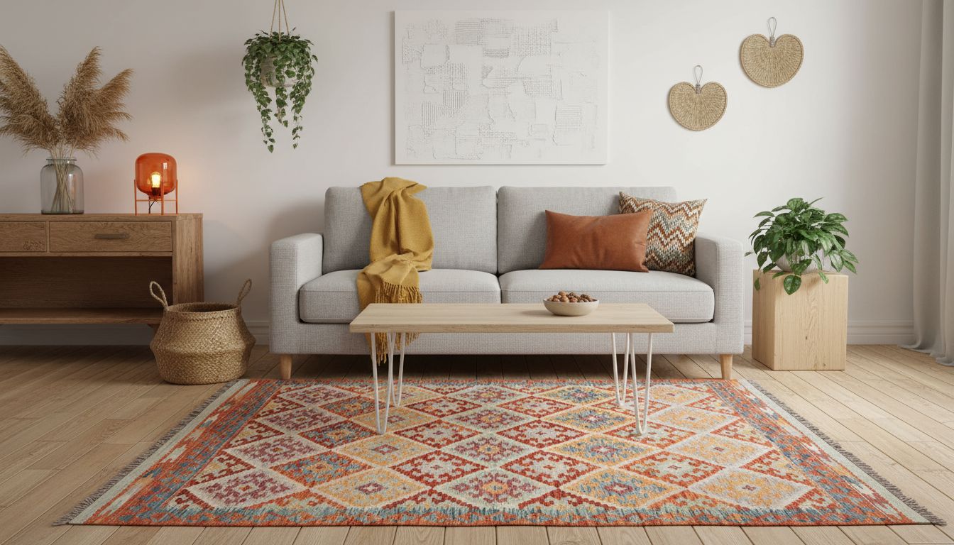 Hier präsentieren wir Ihnen einen handgewebten Ghazghar-Kelim aus Afghanistan, der mit seiner warmen Hauptfarbe in einem kräftigen Rostrot begeistert. Diese Farbe verleiht dem Teppich eine einladende und erdige Ausstrahlung. Begleitet wird das Rostrot von einem sanften Beige, das den Kontrast verstärkt und das Muster elegant hervorhebt. Ein weiches Blaugrün fügt eine frische Note hinzu und harmoniert perfekt mit den übrigen Farben. Ein zartes Lila ergänzt die Farbpalette und sorgt für ...mehr Beschreibung