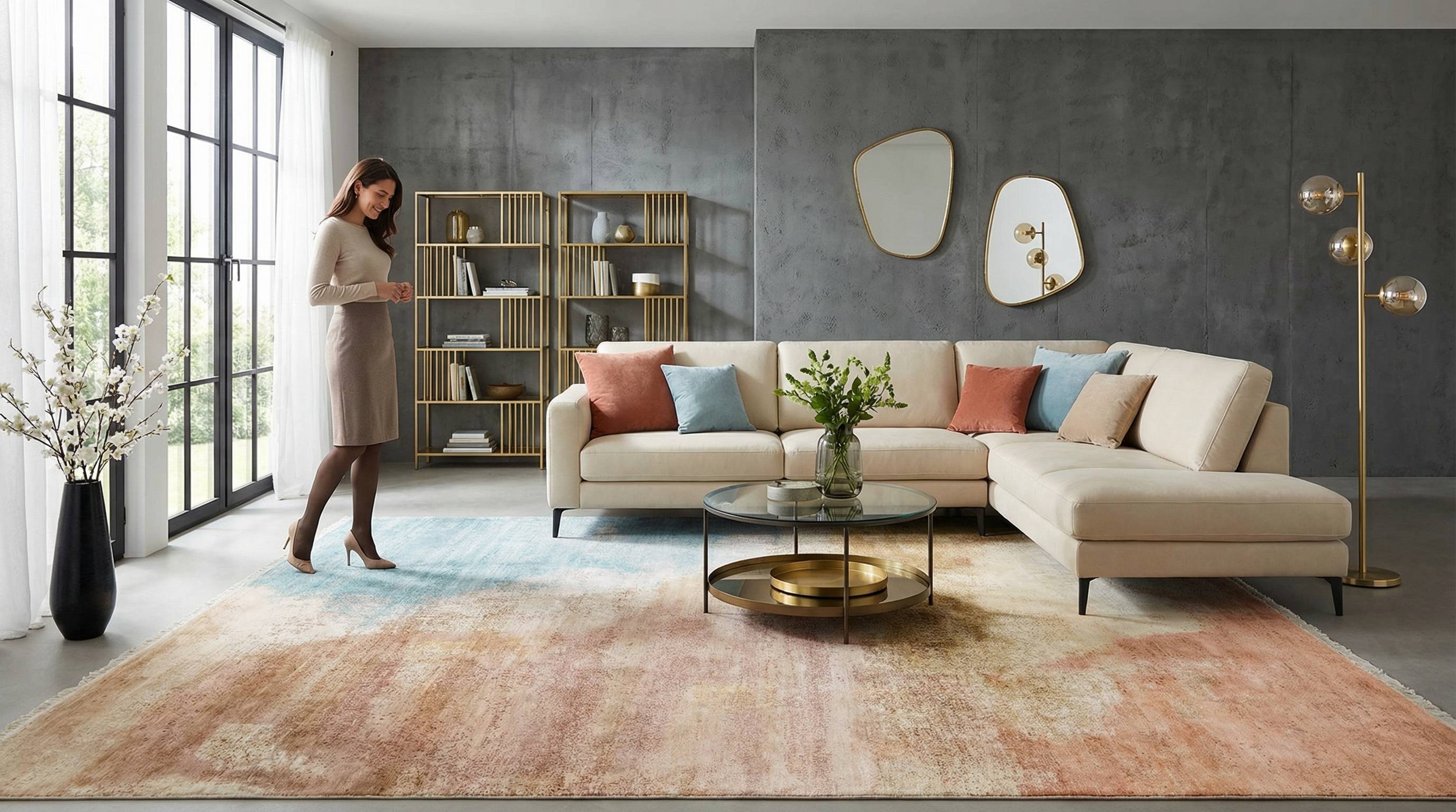 Dieser handgeknüpfte Designerteppich aus der Collection "Eterno" überzeugt durch seine harmonische Farbkombination und exquisite Materialwahl. Er besteht aus handgekardeter Schafwolle von höchster Qualität und erstklassiger Bambusseide, die ihm eine unverwechselbare Eleganz verleiht. Die feine Knüpfung mit persischen Knoten sorgt für außergewöhnliche Haltbarkeit und eine luxuriöse Haptik.Das Muster des Teppichs erinnert an ein impressionistisches Gemälde mit sanften Übergängen ...