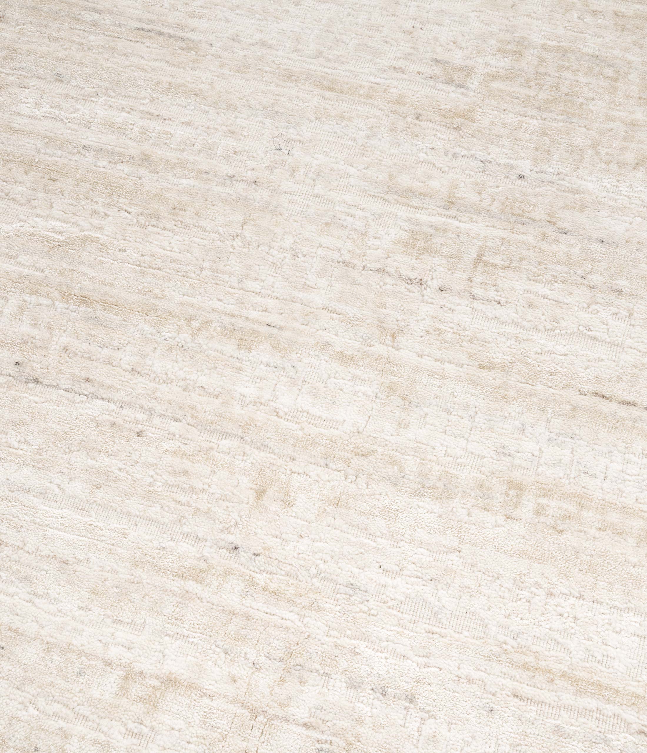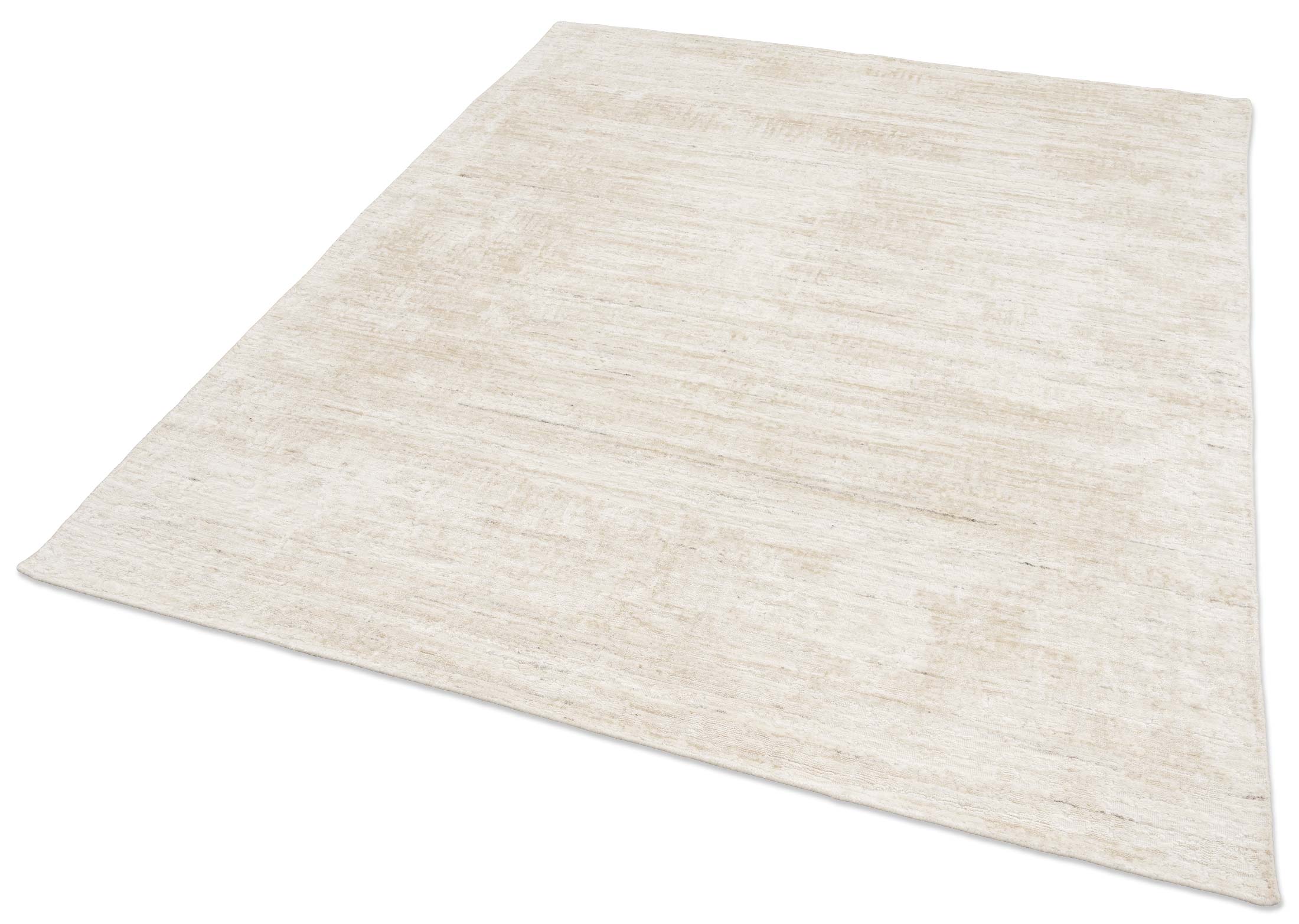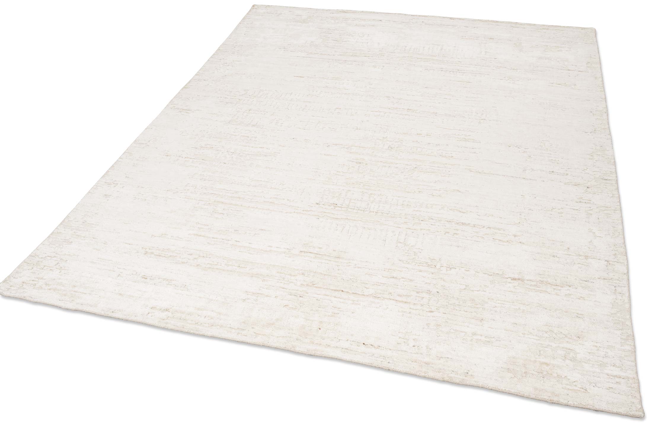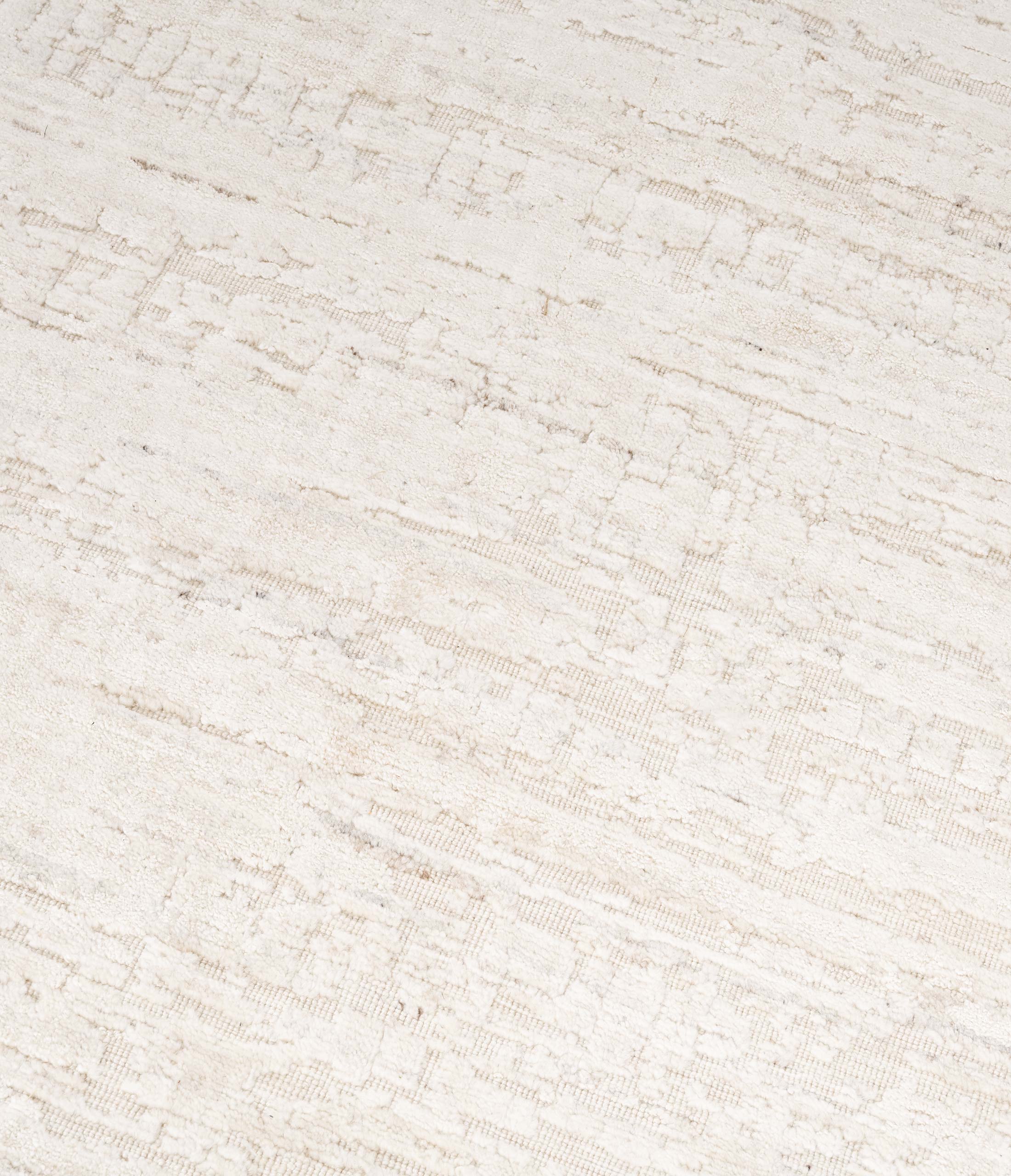 Dieser handgewebte Eterno-Basic Teppich aus Indien präsentiert sich in einem eleganten Creme als Hauptfarbe. Die dezente Farbpalette wird durch sanfte Beige- und Elfenbeintöne ergänzt, die dem Teppich eine zeitlose und ruhige Ausstrahlung verleihen. Vereinzelte, kaum wahrnehmbare Akzente in hellem Graubraun fügen dem Design eine subtile Tiefe hinzu. Die harmonische Kombination dieser Farben sorgt für eine warme, einladende Atmosphäre in jedem Raum.Das Muster des Teppichs ist von einer ...