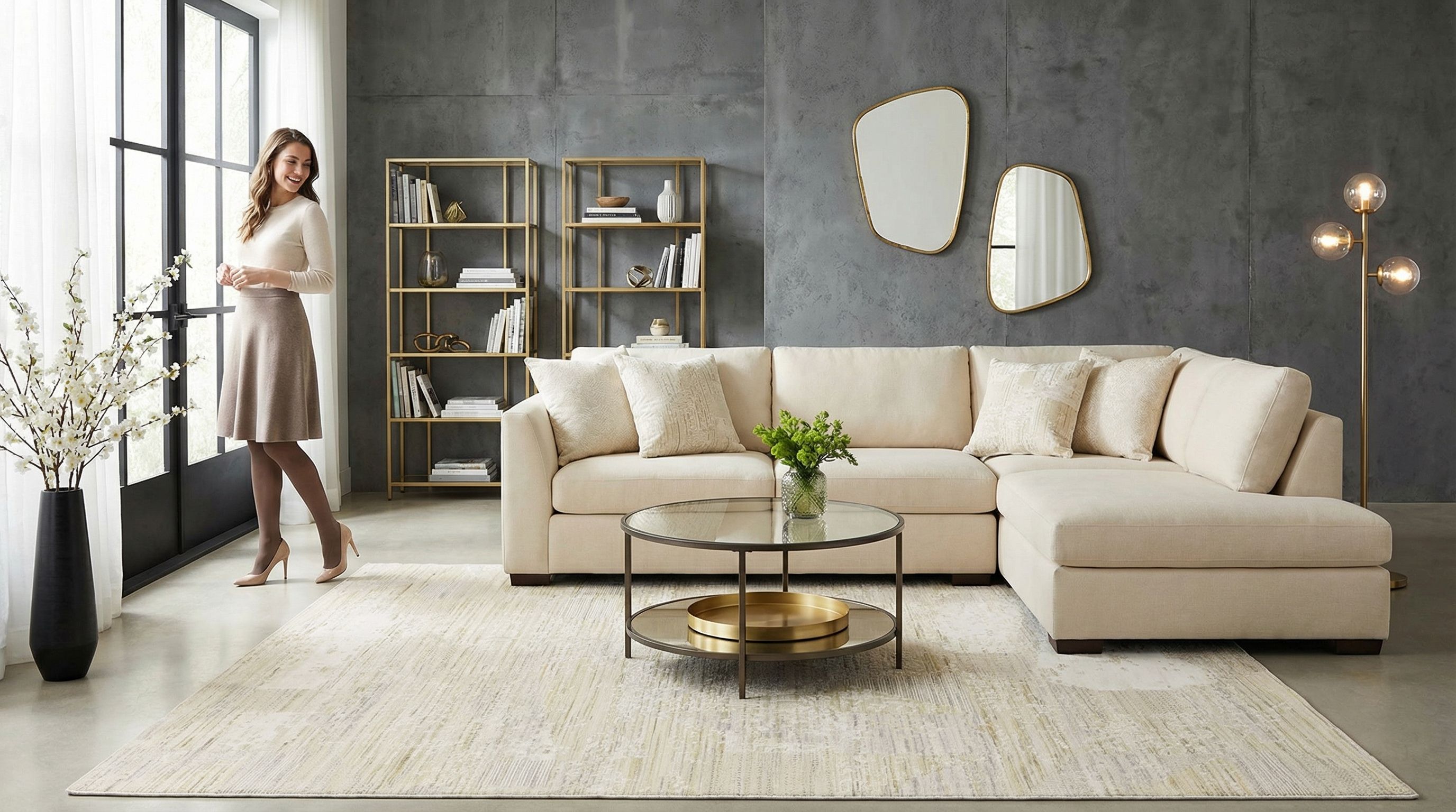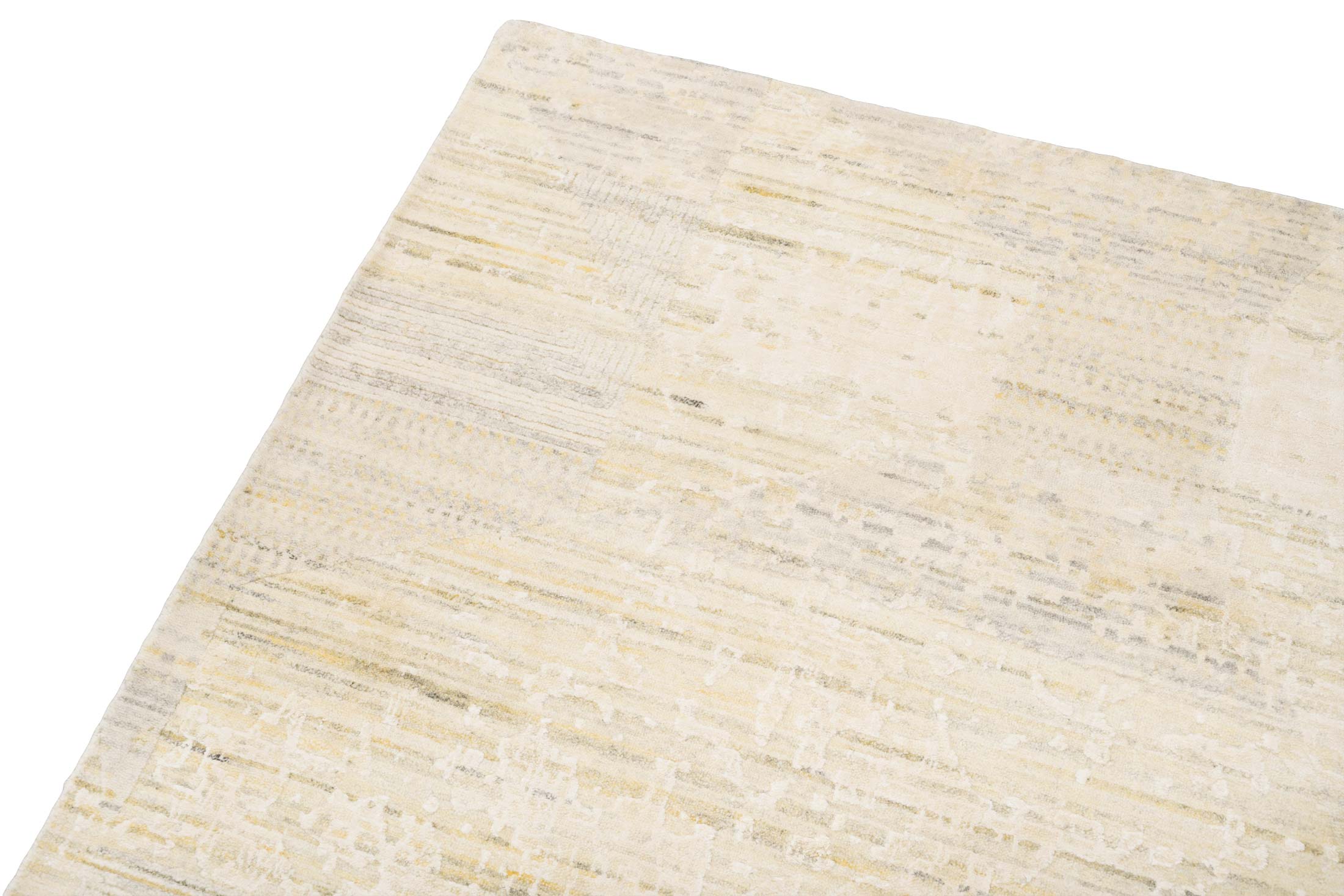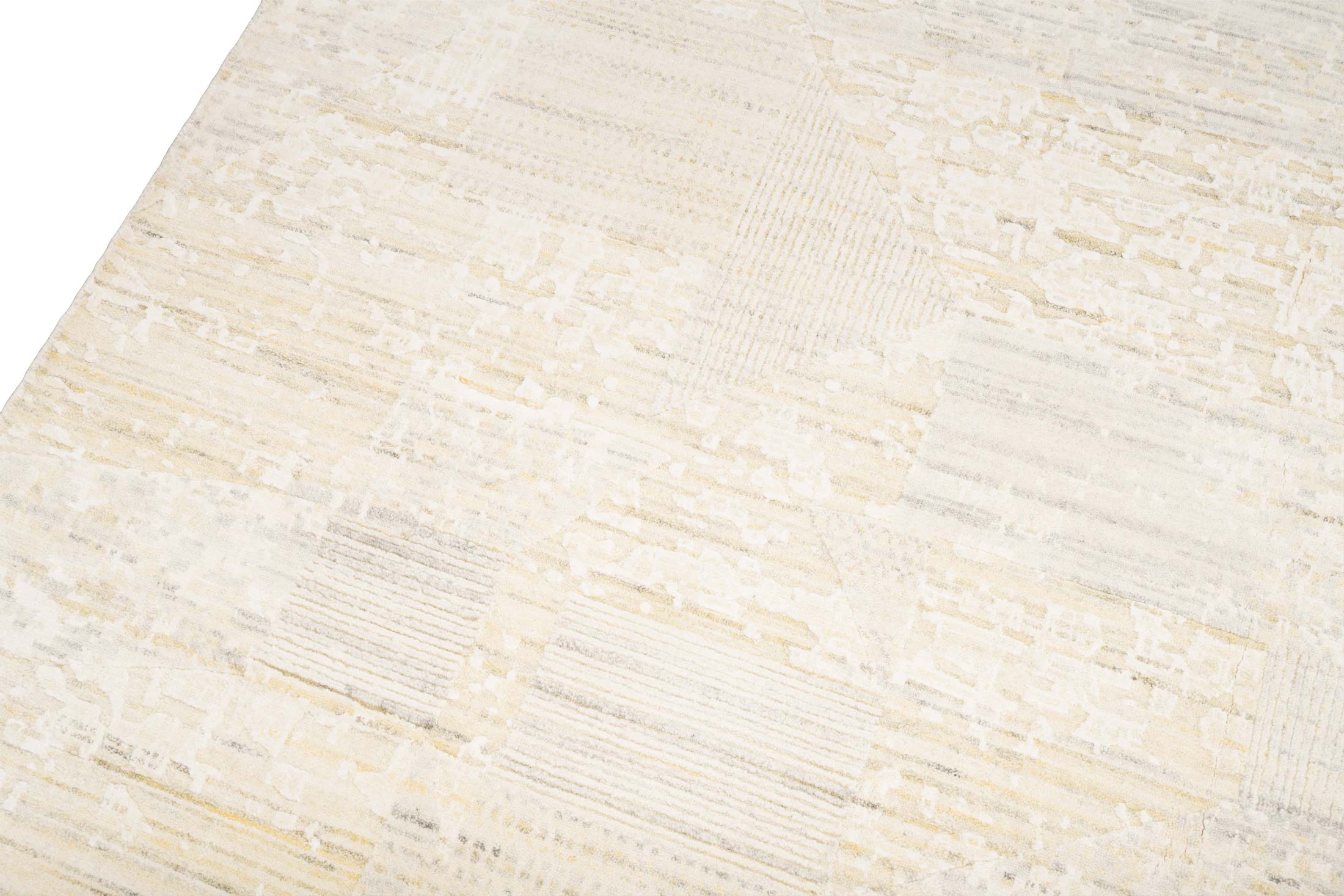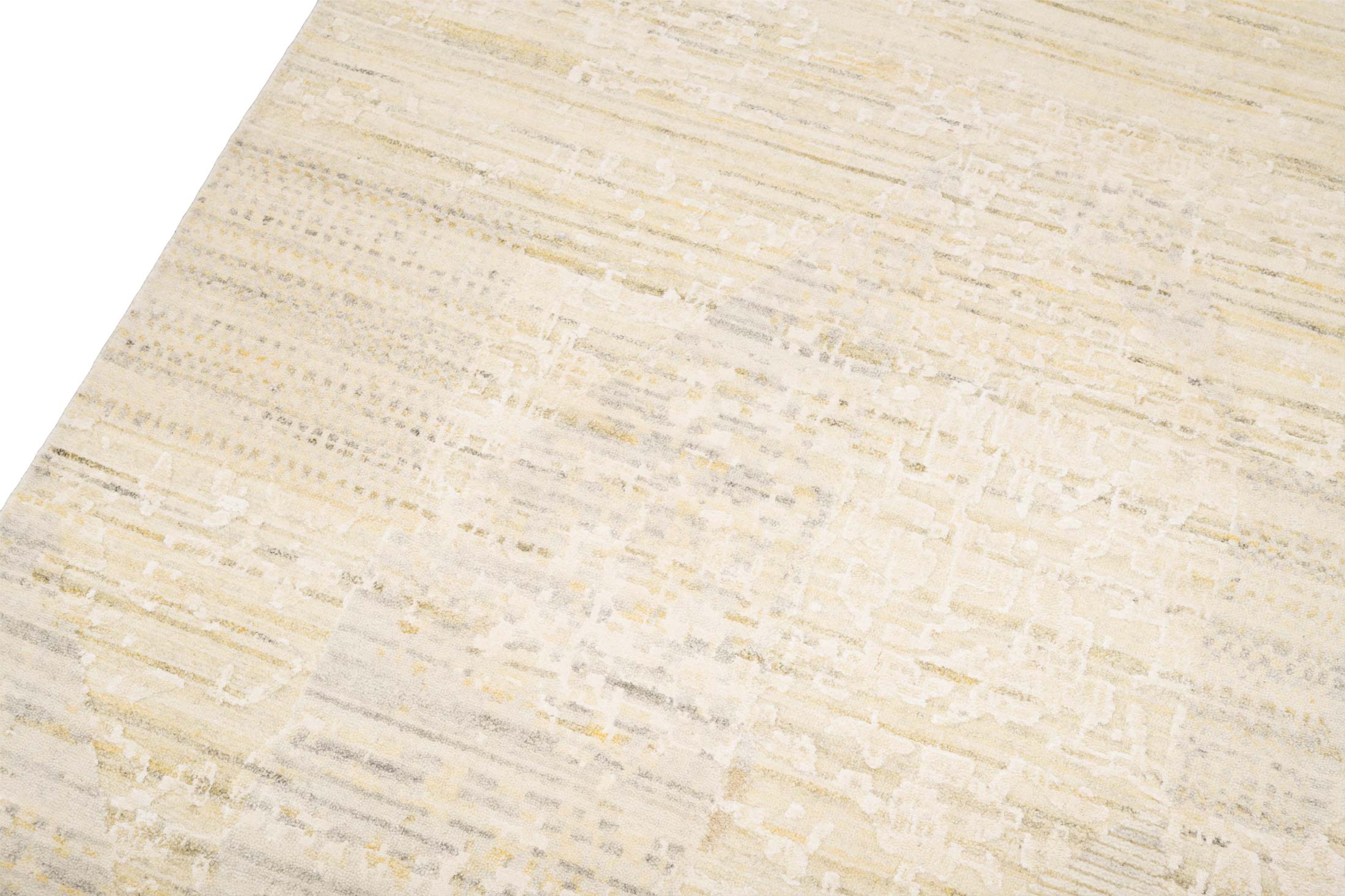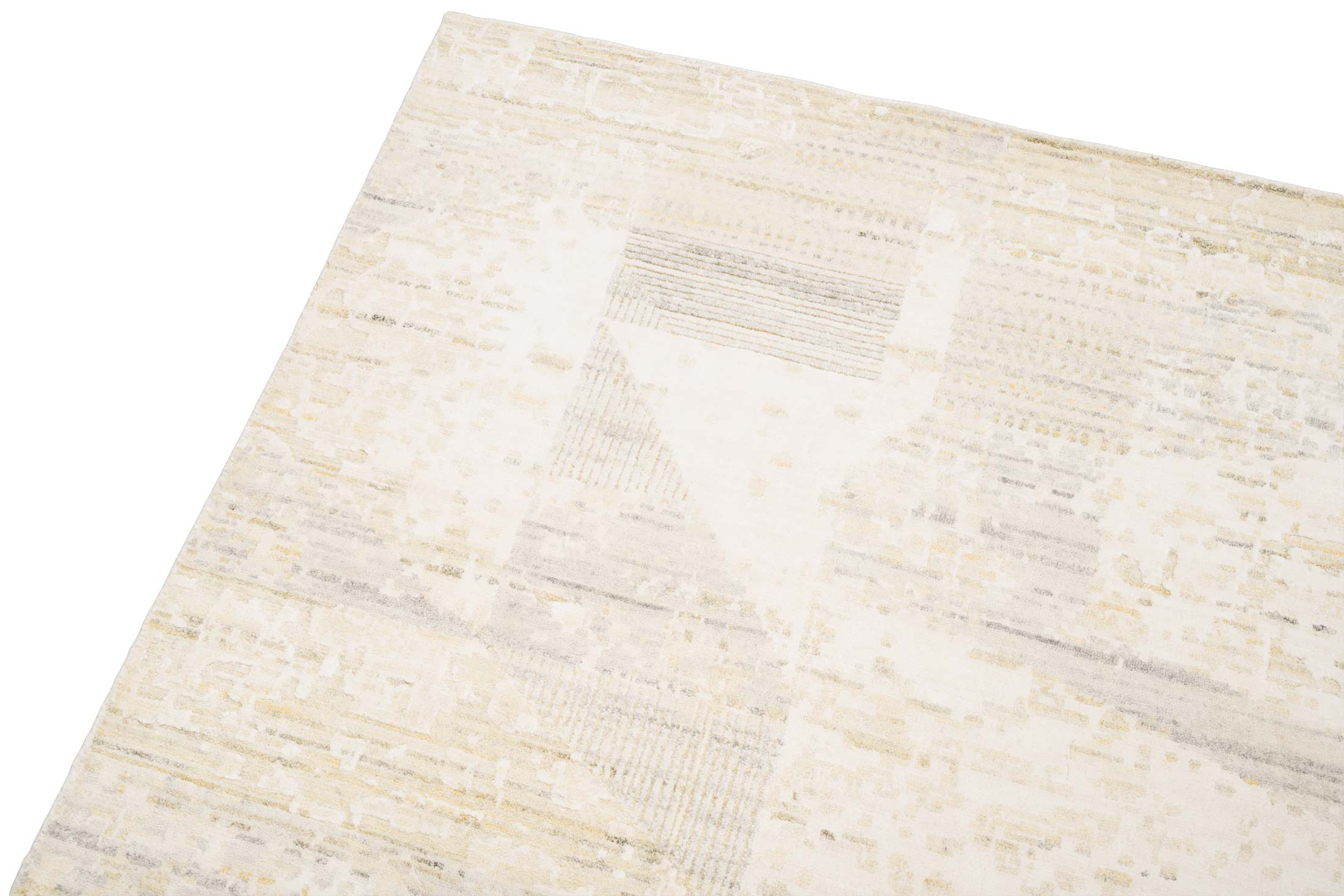 Hier präsentieren wir Ihnen den handgewebten Teppich Eterno-Basic aus Indien, der eine harmonische Kombination aus natürlichen Materialien und traditionellem Design bietet. Die Hauptfarbe dieses Teppichs ist ein zartes Beige, das eine warme und einladende Atmosphäre schafft. Begleitet wird diese Hauptfarbe von einem sanften Grau und einem dezenten Creme, die dem Teppich eine elegante und vielseitige Optik verleihen. Diese harmonischen Farben werden von subtilen Akzenten in einem hellen ...mehr Beschreibung