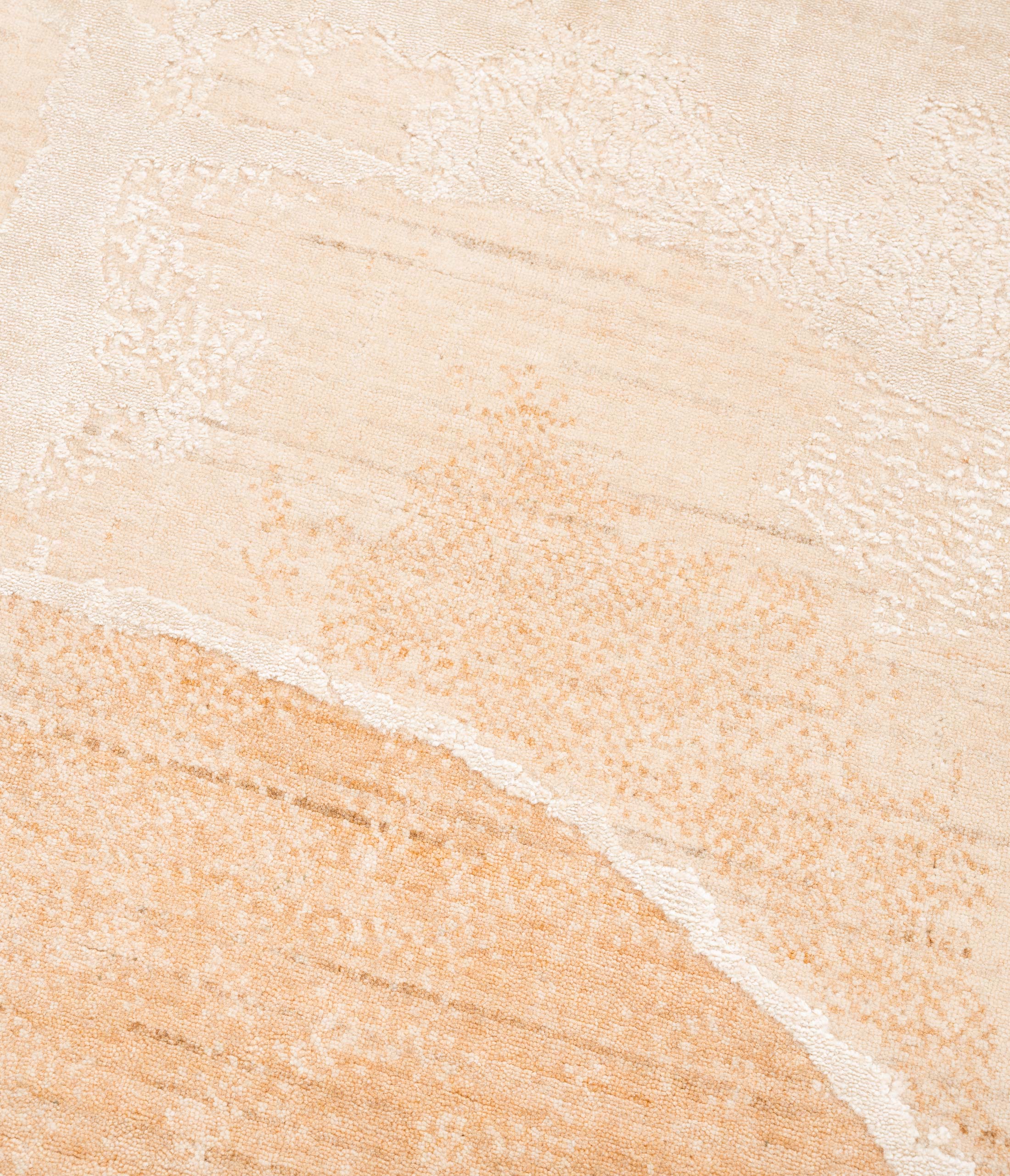 Für ein Interieur, das von purem Luxus und mondäner Eleganz geprägt ist, bietet dieser Teppich die perfekte, stilvolle Basis. Die meisterhaft eingewebte Bambusseide fängt das Licht auf spektakuläre Weise ein und verleiht dem Raum einen subtilen, aber überaus edlen Glanz. Durch den aufwendigen 3D-Reliefschnitt entsteht eine opulente Haptik, die nicht nur die Füße verwöhnt, sondern auch optisch höchste Exklusivität ausstrahlt. Als abstraktes Bodengemälde in warmen, schmeichelnden Nuancen vollendet er Ihr Glamour-Konzept und unterstreicht Ihren Sinn für außergewöhnliche, handgefertigte Qualität.
