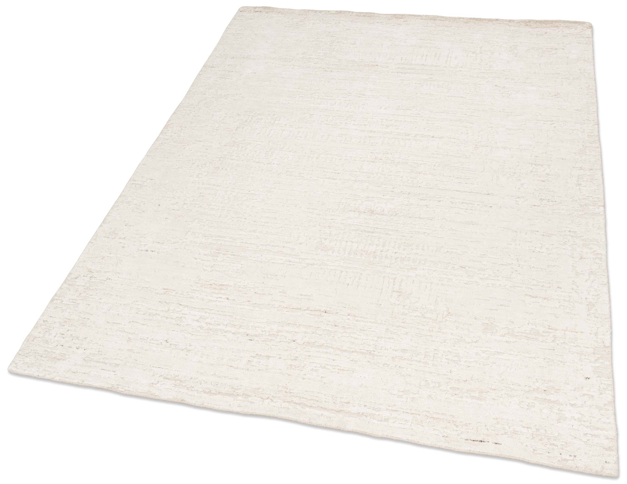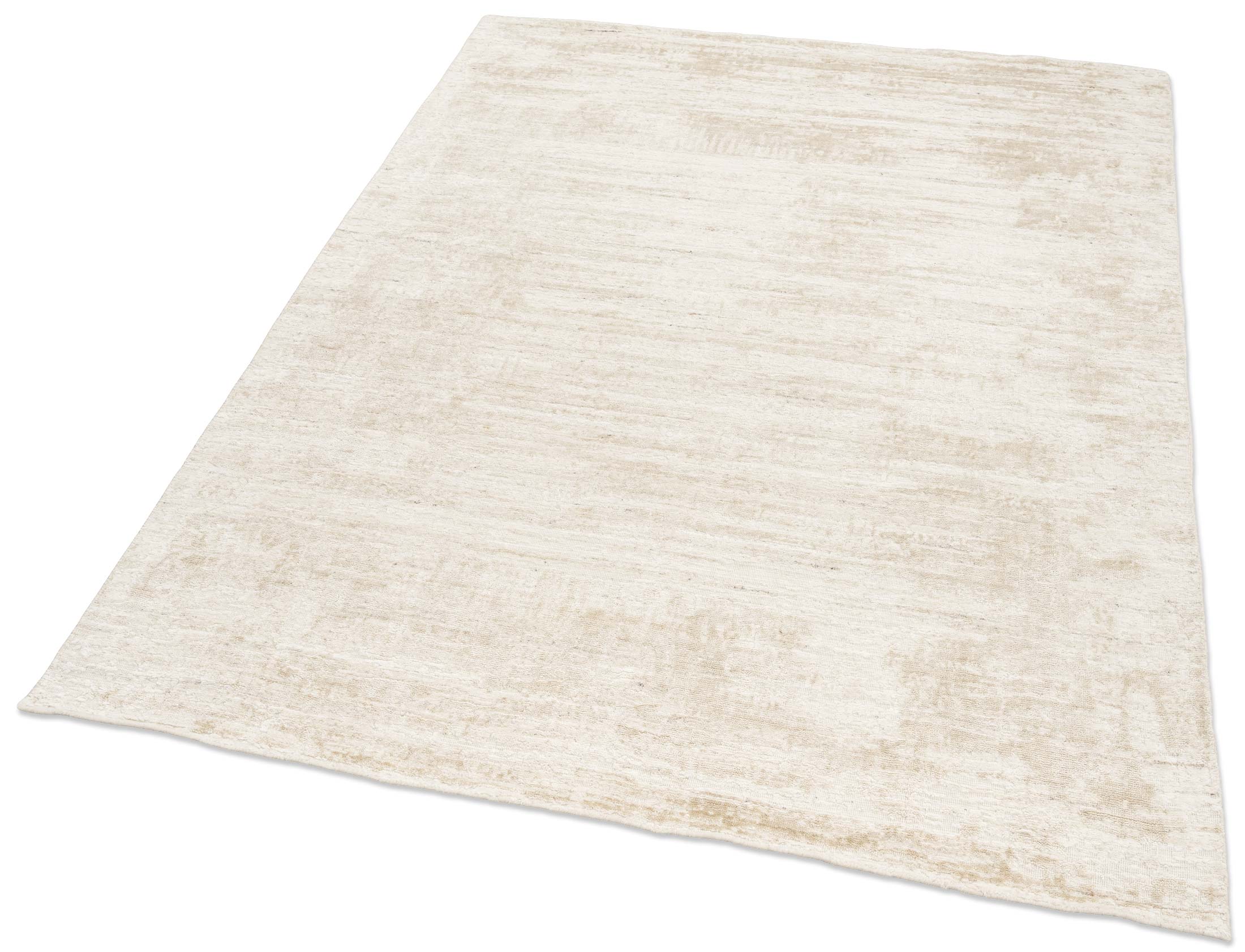 Dieser handgewebte Teppich aus Indien Eterno Basic zeigt eine ruhige, elegante Farbwelt mit Naturcharakter. Hauptfarbe ist ein warmes Creme Beige, das wie ein weicher Grundton den ganzen Teppich trägt. Dazu kommen feine Nuancen in Sand und hellem Taupe, die sich wie zarte Schattierungen über die Fläche legen. Als vierter, zurückhaltender Akzent erscheinen stellenweise sehr helle Graubeige Töne, die dem Gesamtbild Tiefe geben, ohne unruhig zu wirken. Insgesamt bleibt die Wirkung harmonisch und licht, ideal für moderne wie auch klassische Räume.
