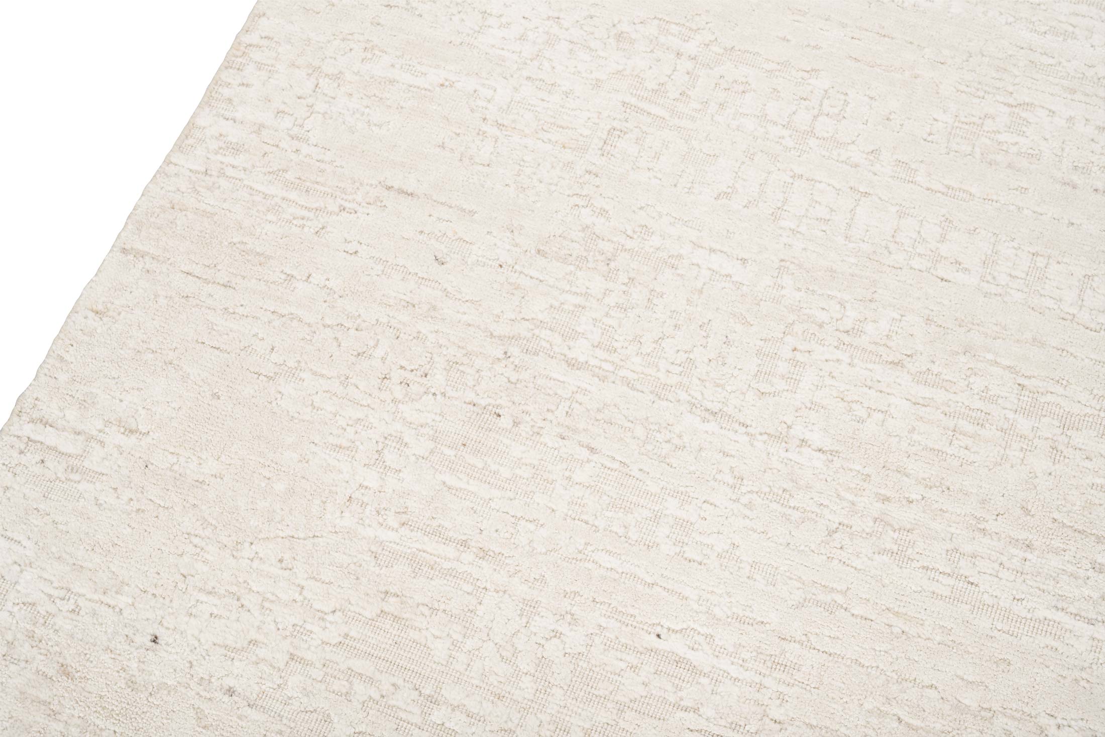 Dieser Teppich wirkt durch seine ruhige, helle Farbwelt und die feine Struktur ausgesprochen modern und architektonisch. Der 3D-Reliefschnitt bringt subtile Tiefe ins Raumkonzept, ohne die klare Linie zeitgenössischer Interiors zu stören. Die Kombination aus Schafwolle und Bambusseide liefert einen edlen, dezenten Schimmer – perfekt für hochwertige, reduzierte Einrichtungen. So entsteht ein luxuriöser Look, der Designmöbel souverän ergänzt und den Raum optisch weitet.