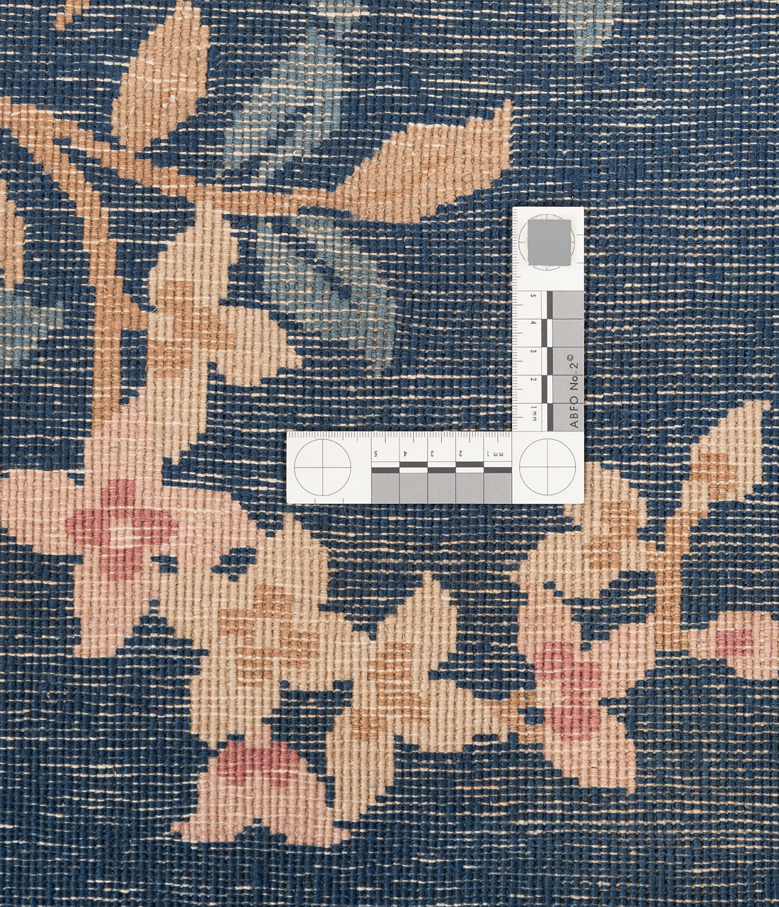 Da der Ethno-Style den Fokus auf traditionelles Handwerk und globale kulturelle Einflüsse legt, ist dieser Teppich mit seinen deutlichen asiatischen Pagoden- und Pflanzendarstellungen ein idealer Begleiter. Die Kombination aus dem tiefblauen Rahmen und dem erdigeren Innenton spiegelt die Farben der Natur wider, die in globalen Einrichtungen oft zu finden sind. Er fungiert als authentisch wirkendes Herzstück, das das Flair ferner Länder und Kulturen direkt in das Wohnzimmer holt. Das neu geknüpfte antike Design betont die Wertschätzung für Herkunft und traditionelle Formensprache, was den Kern der Ethno-Ästhetik bildet.