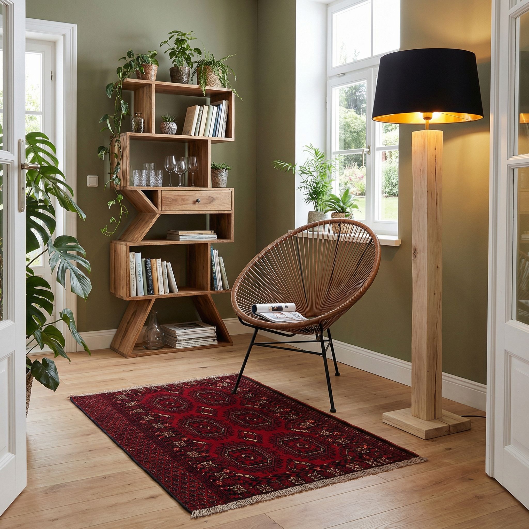 Als warmer Kontrast im kühlen, reduzierten Scandinavian-Style sorgt dieser rote Tekke-Tschowal für die notwendige Portion "Hygge" und Geborgenheit. Während der nordische Stil oft auf Weiß und helle Hölzer setzt, fungiert dieses antike Meisterwerk als kraftvoller Ankerpunkt, der dem Raum Tiefe und Struktur verleiht. Die feine, kurzflorige Textur passt wunderbar zur skandinavischen Wertschätzung für hochwertiges Handwerk und natürliche Materialien. So entsteht ein spannendes Zusammenspiel aus nordischer Klarheit und orientalischer Opulenz, das Ihr Zuhause einzigartig und einladend macht.